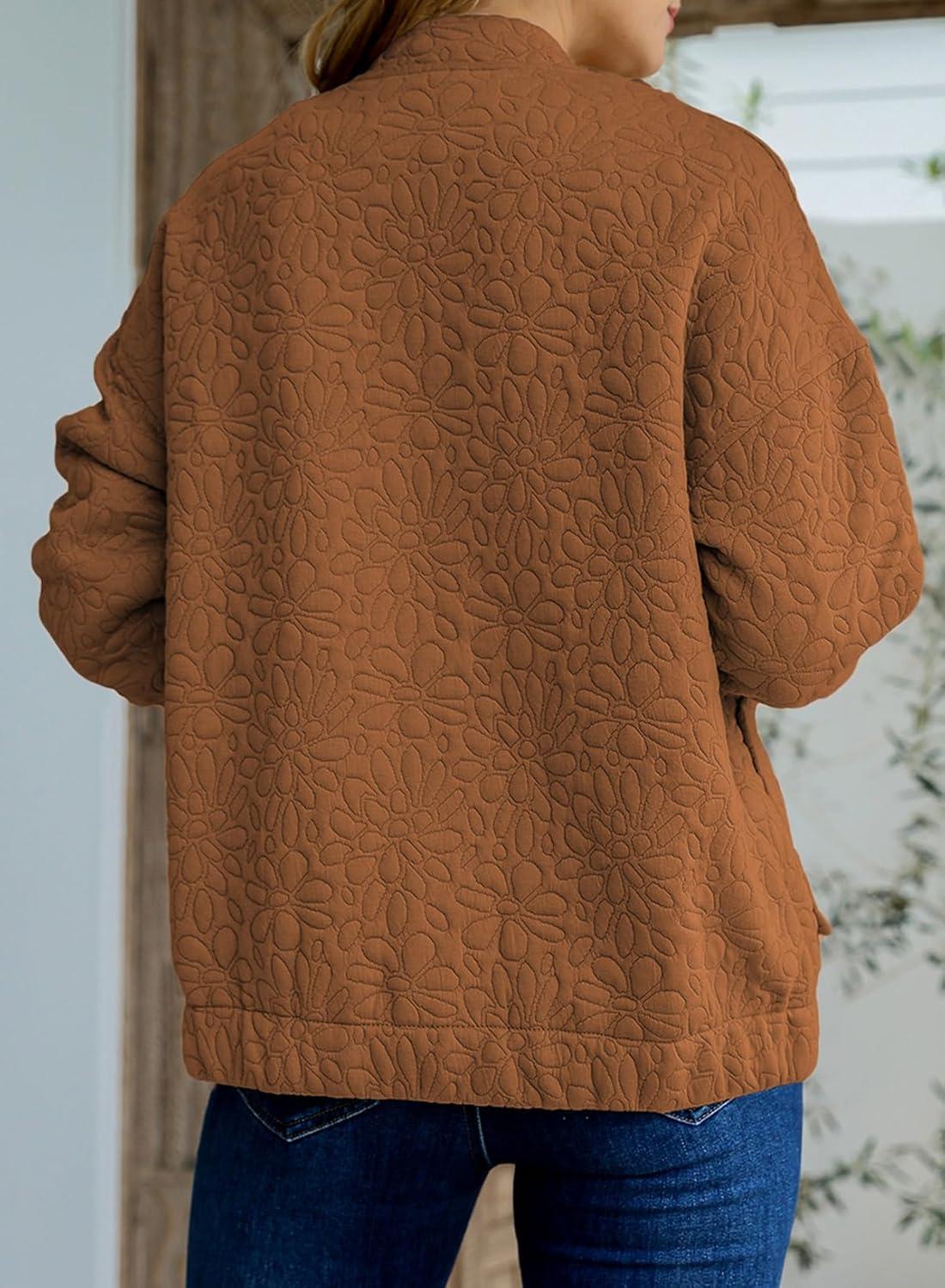 EVALESS Bomber Jackets for Women Spring Fashion 2025 Cute Jacquard Coats Lightweight Zip Up Jackets Dressy Casual(Chestnut)