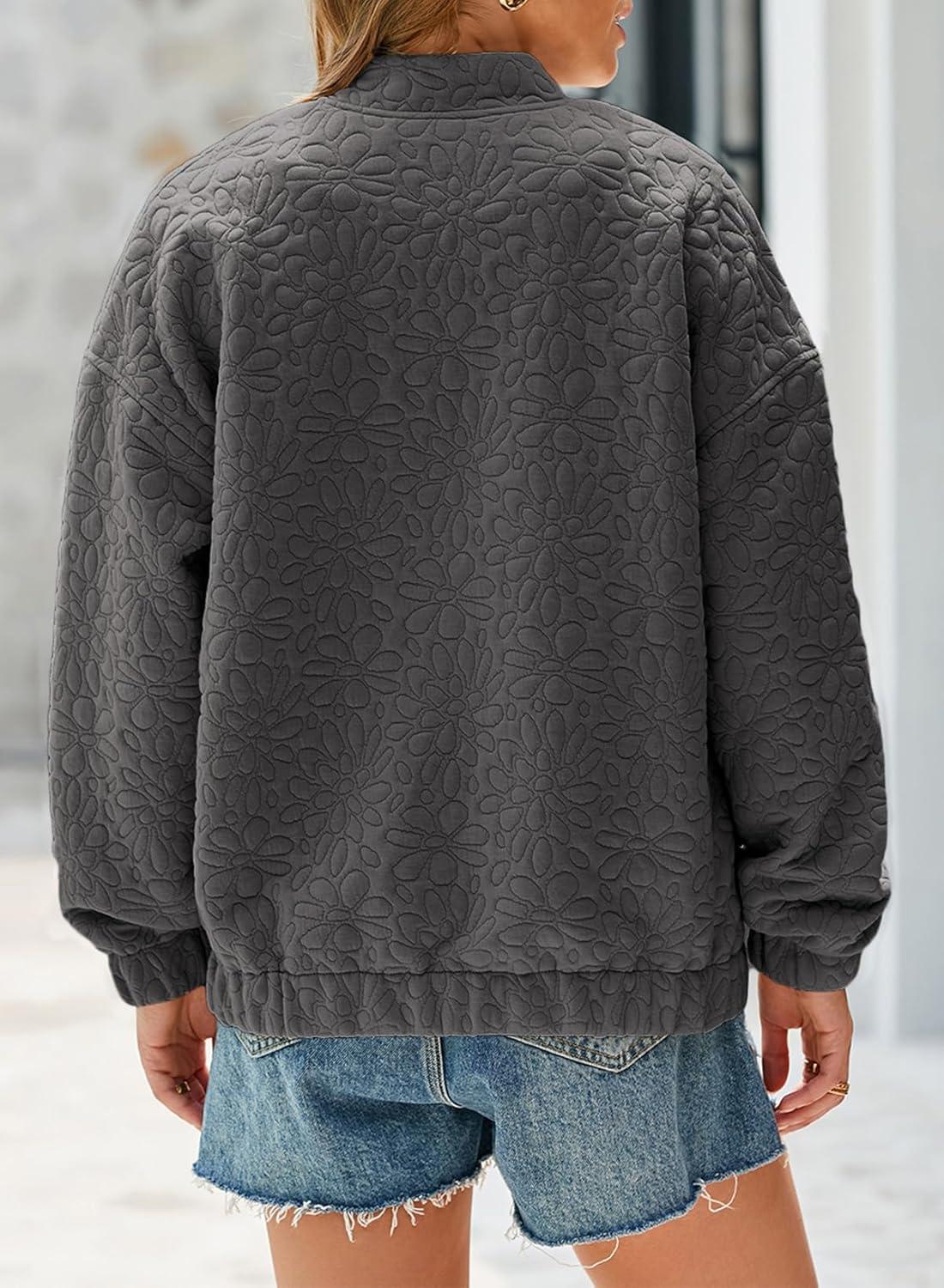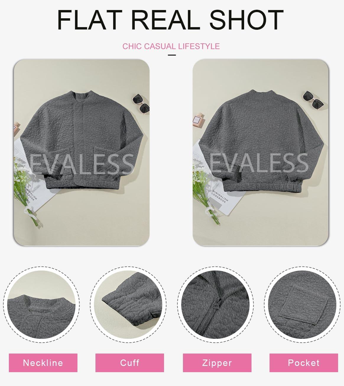 EVALESS Bomber Jackets for Women Spring Fashion 2025 Cute Jacquard Coats Lightweight Zip Up Jackets Dressy Casual(Dark Grey)