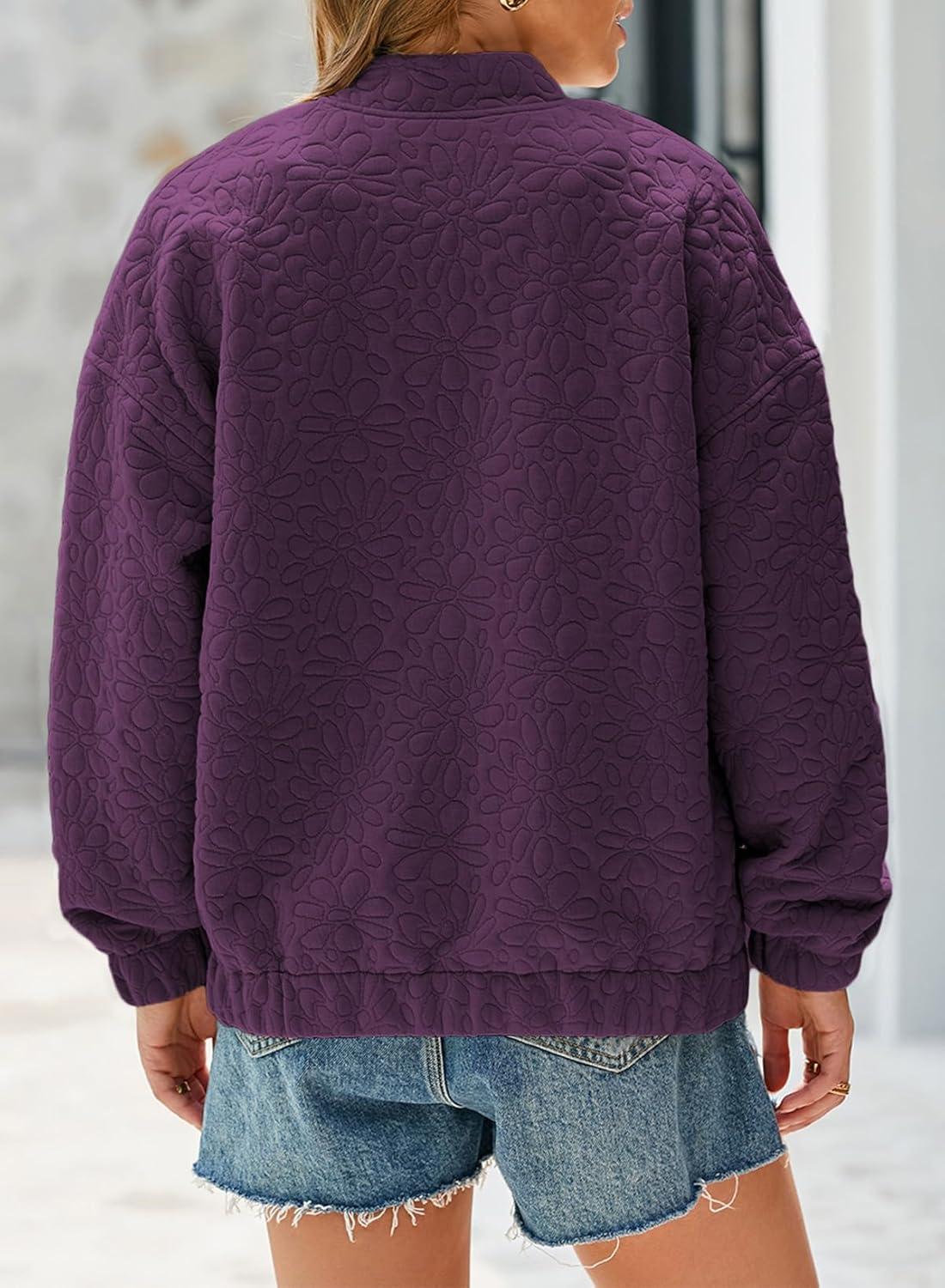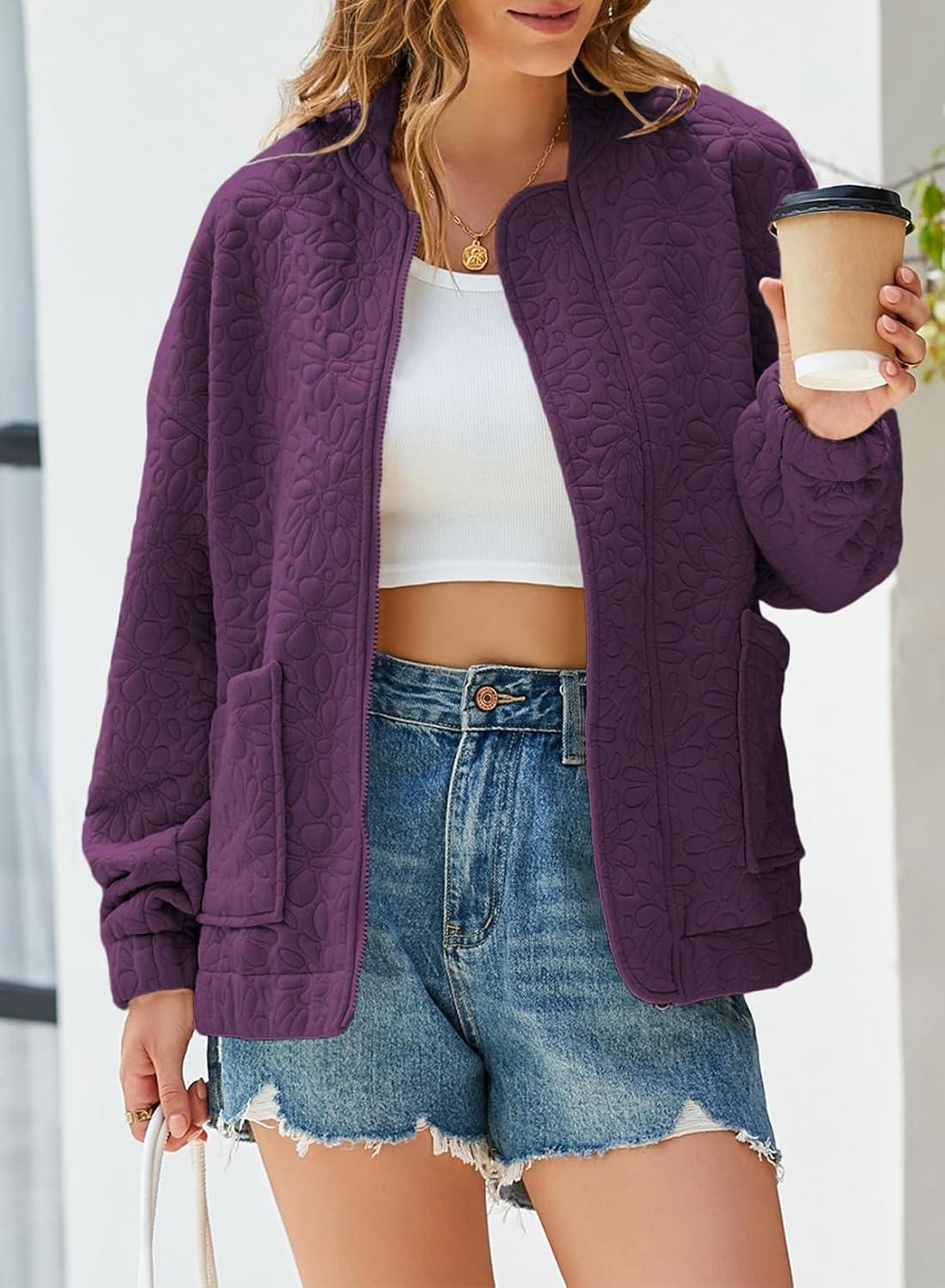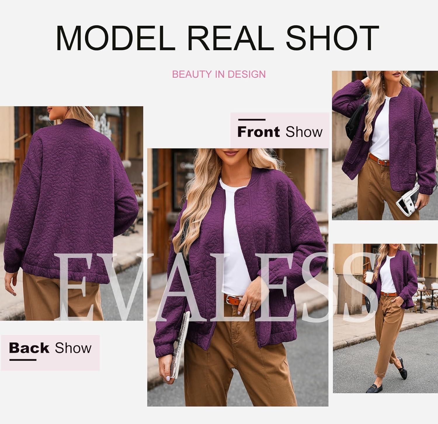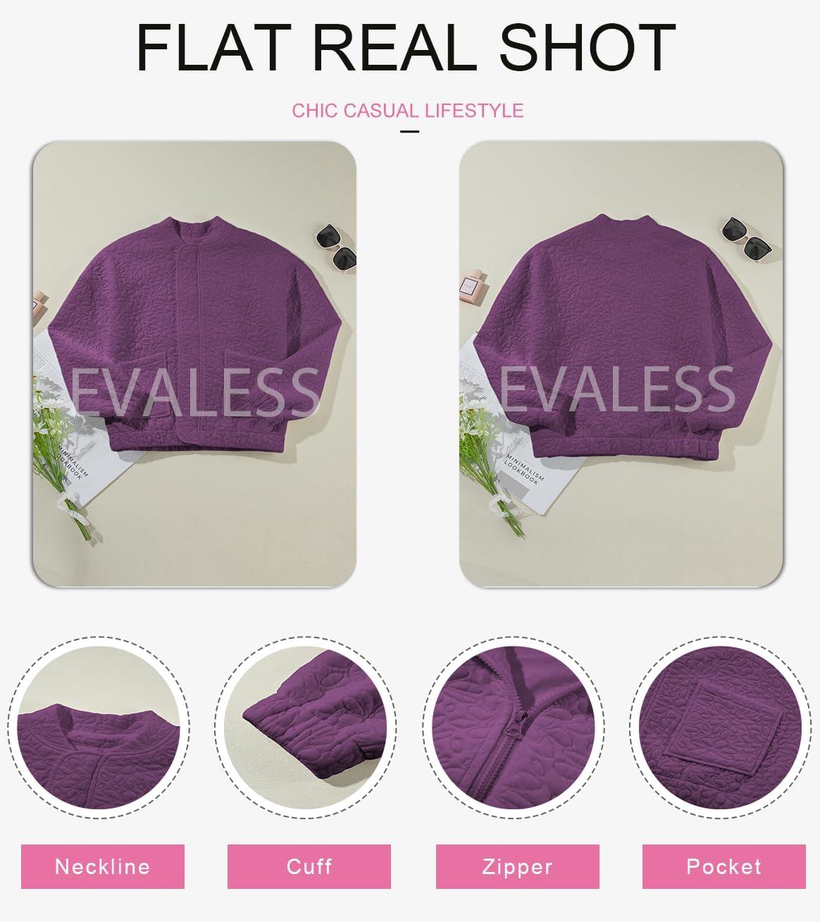 EVALESS Bomber Jackets for Women Spring Fashion 2025 Cute Jacquard Coats Lightweight Zip Up Jackets Dressy Casual(Purple Orchid)