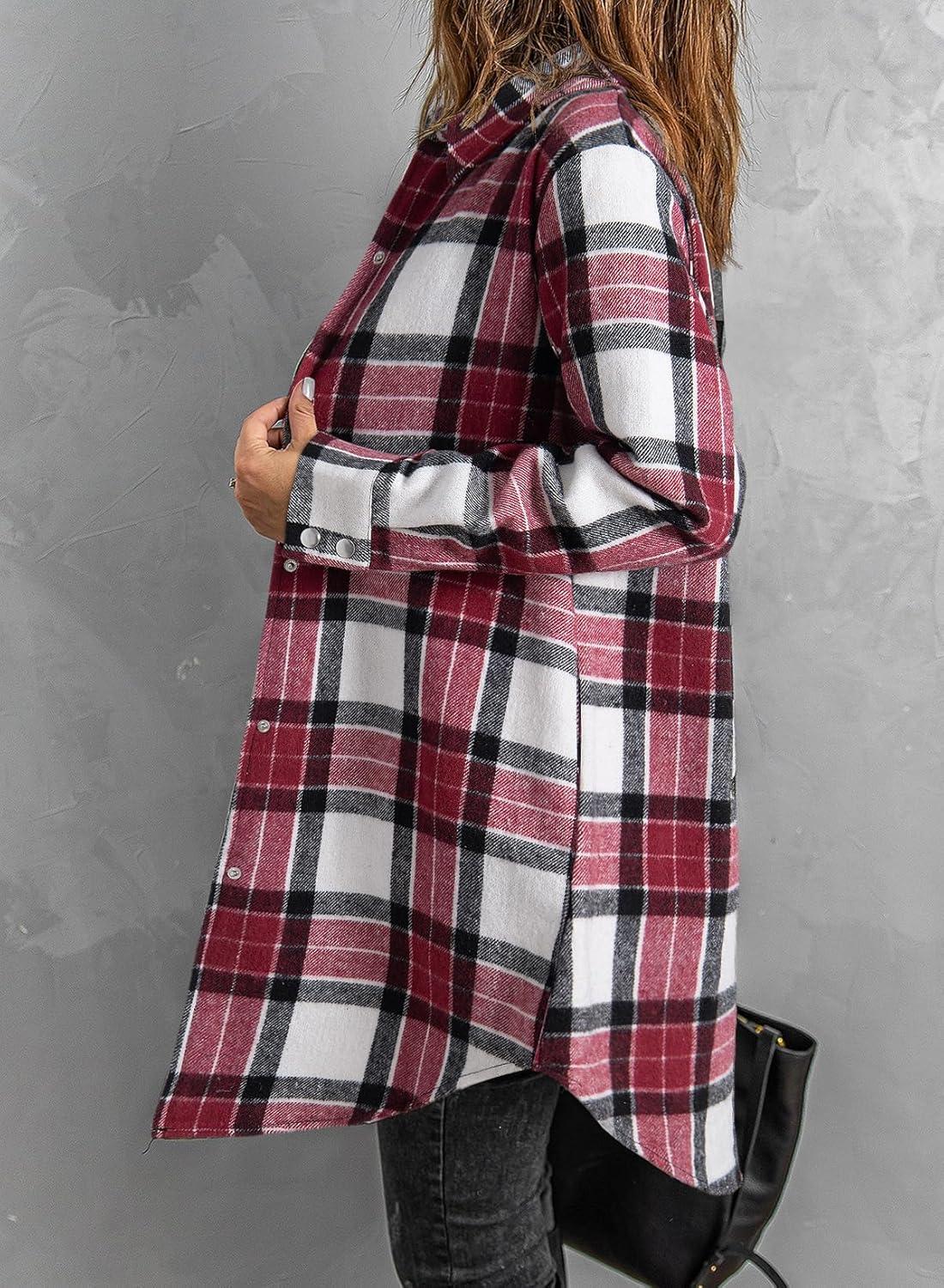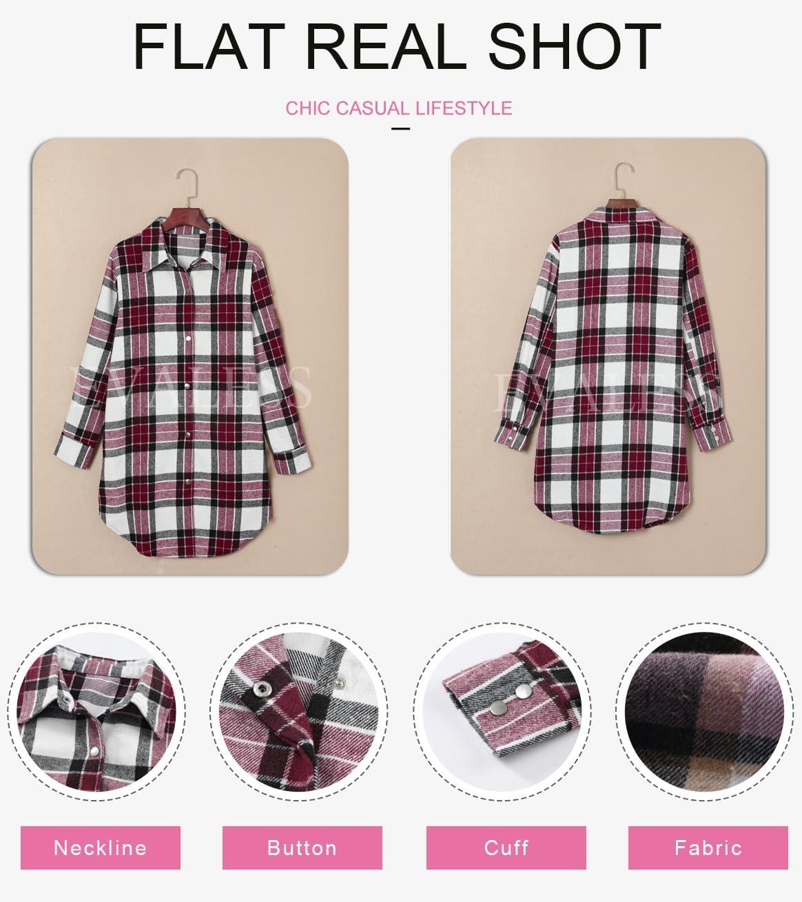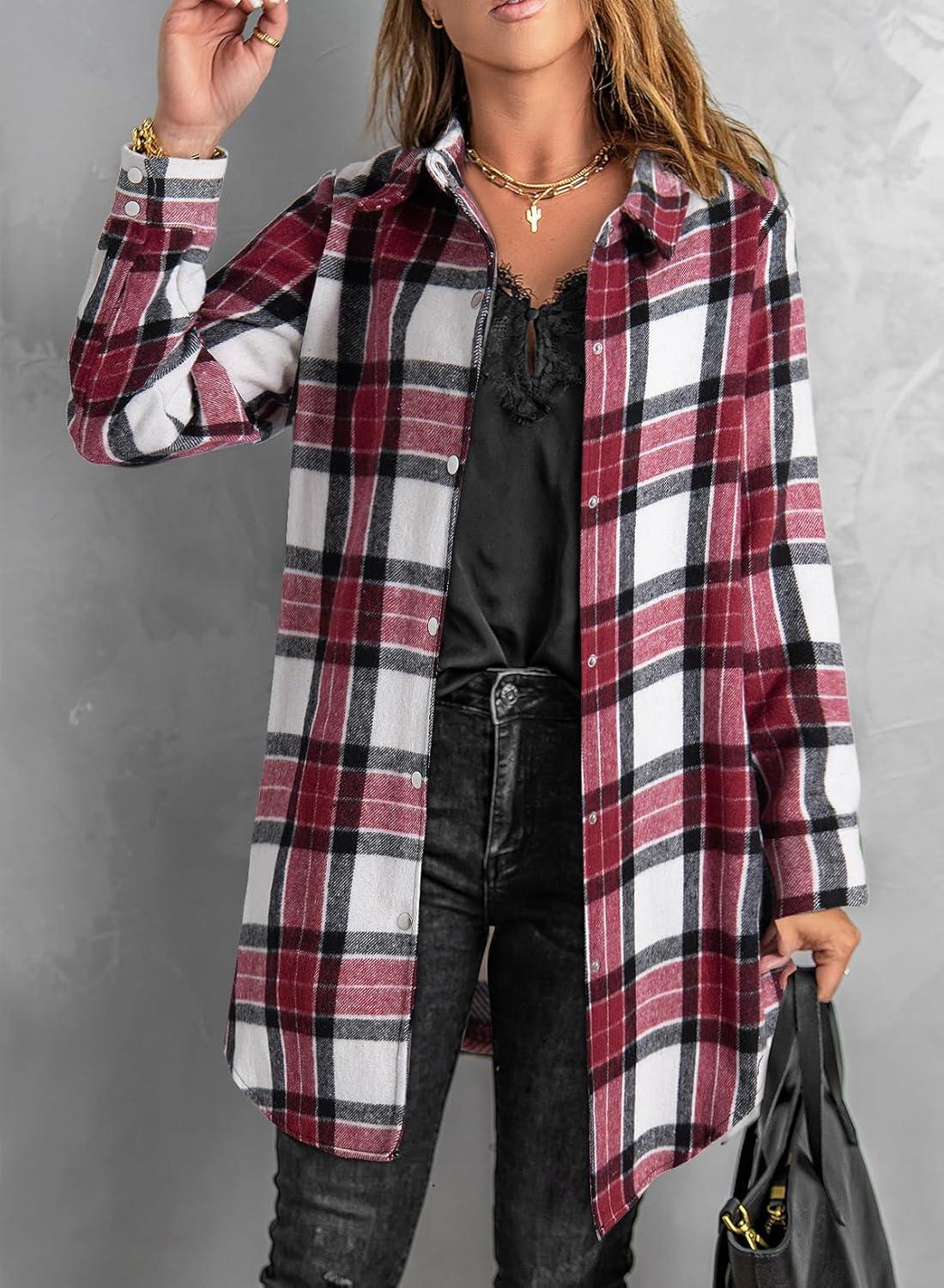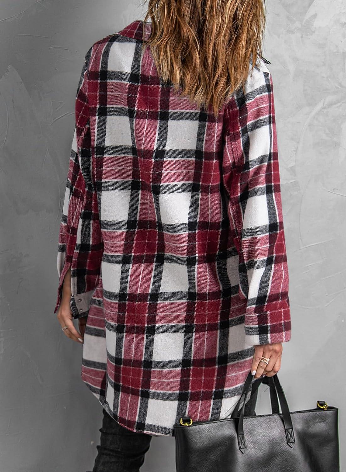 EVALESS Color Block Plaid Shacket Jacket Womens Fall Clothes Fashion Outfits(B2 New Red)