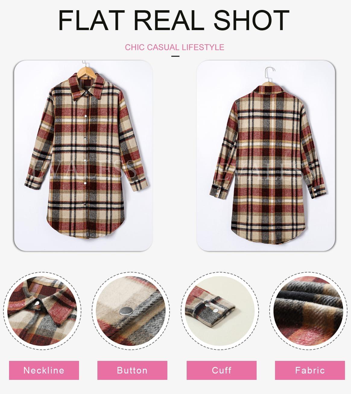 imageEVALESS Color Block Plaid Shacket Jacket Womens Fall Clothes Fashion OutfitsB2 New Red