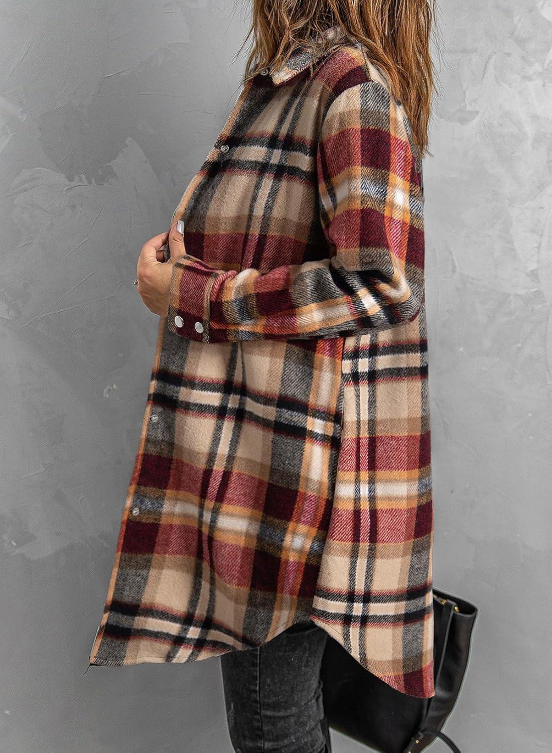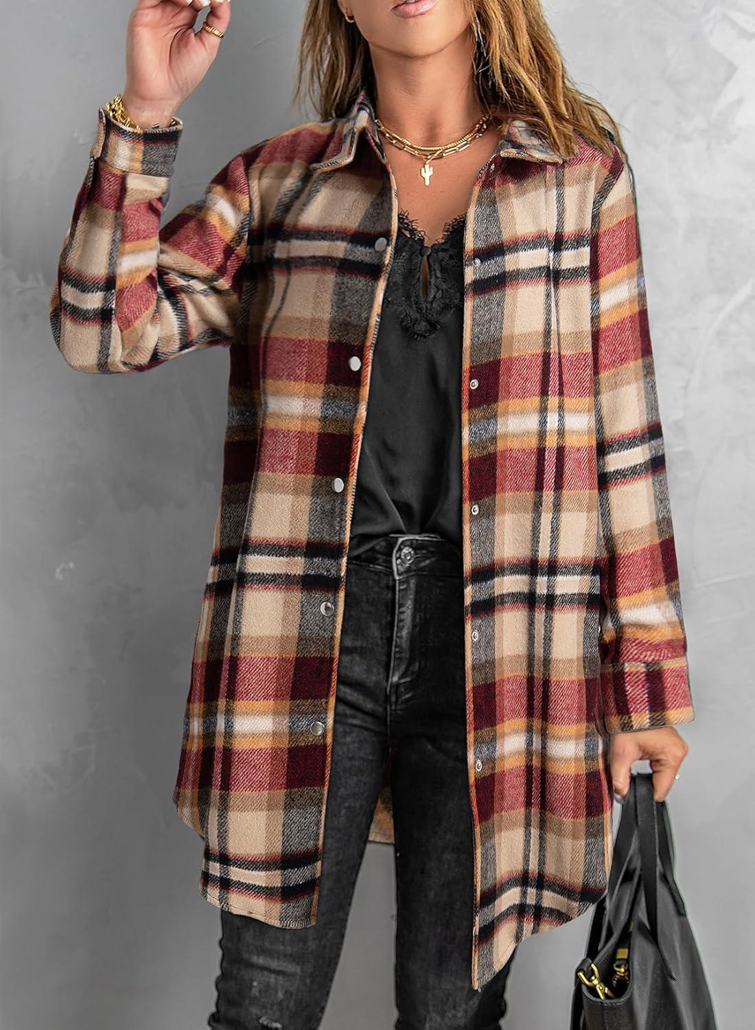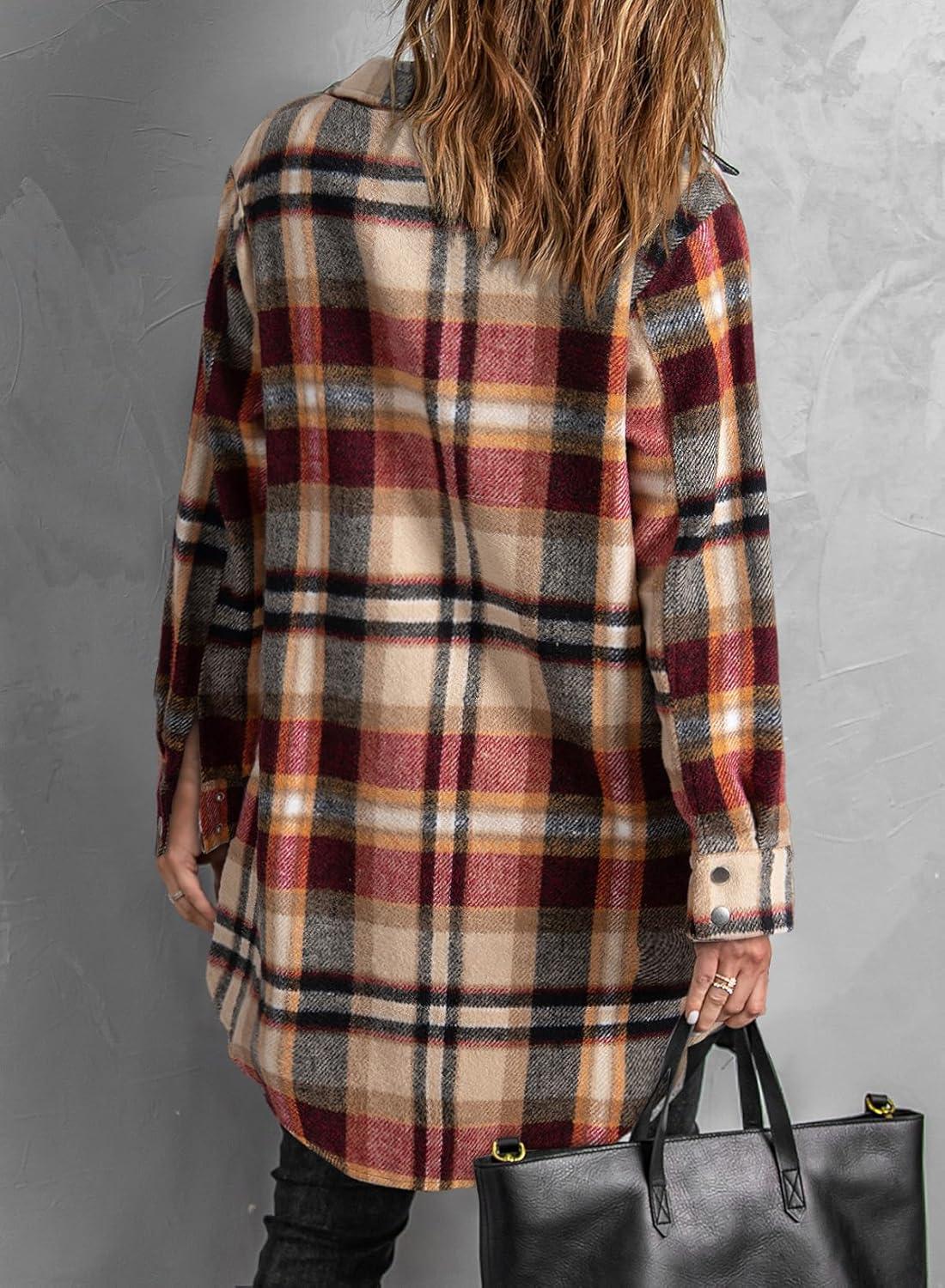 EVALESS Color Block Plaid Shacket Jacket Womens Fall Clothes Fashion Outfits(B2 New Red)