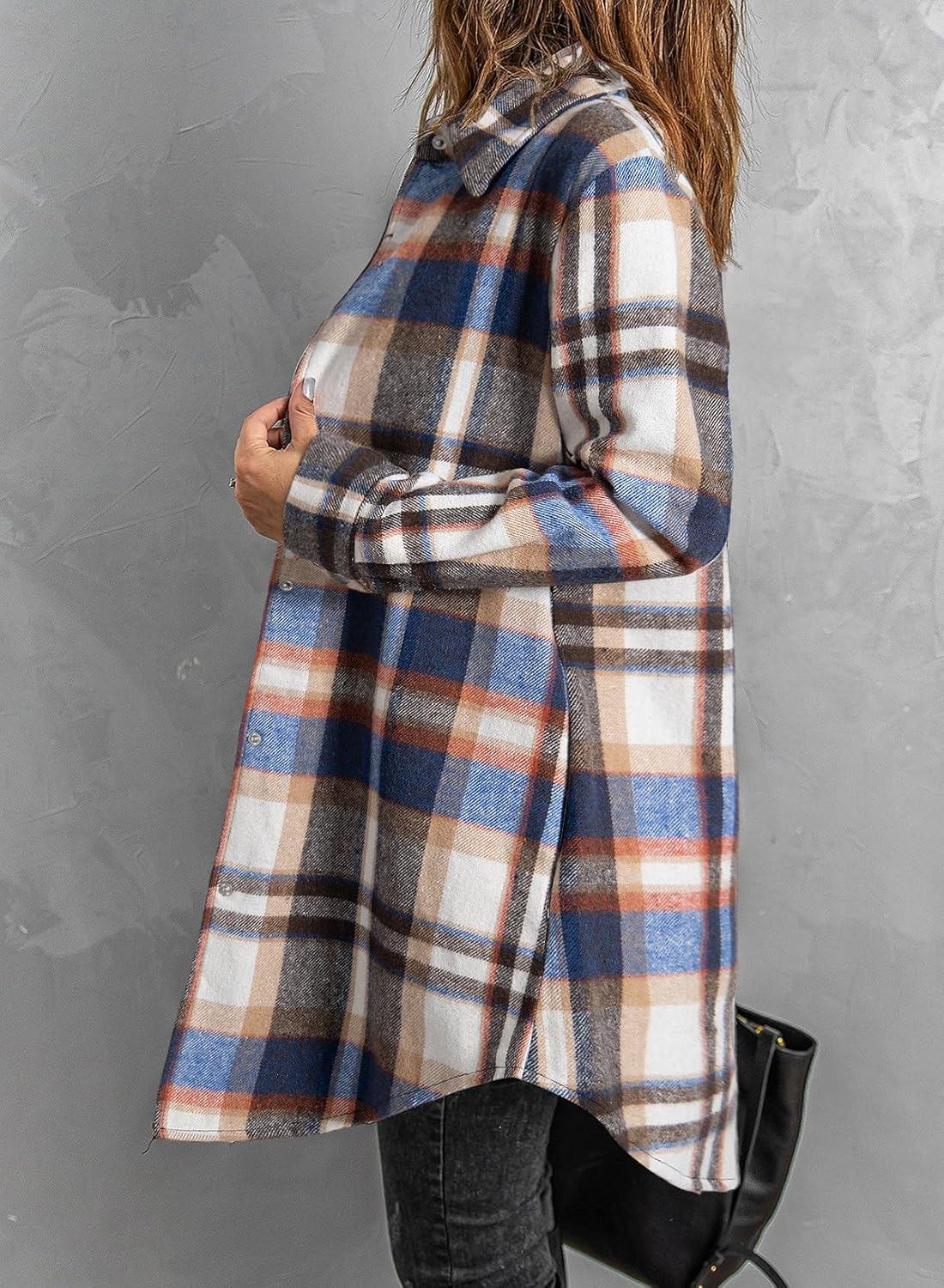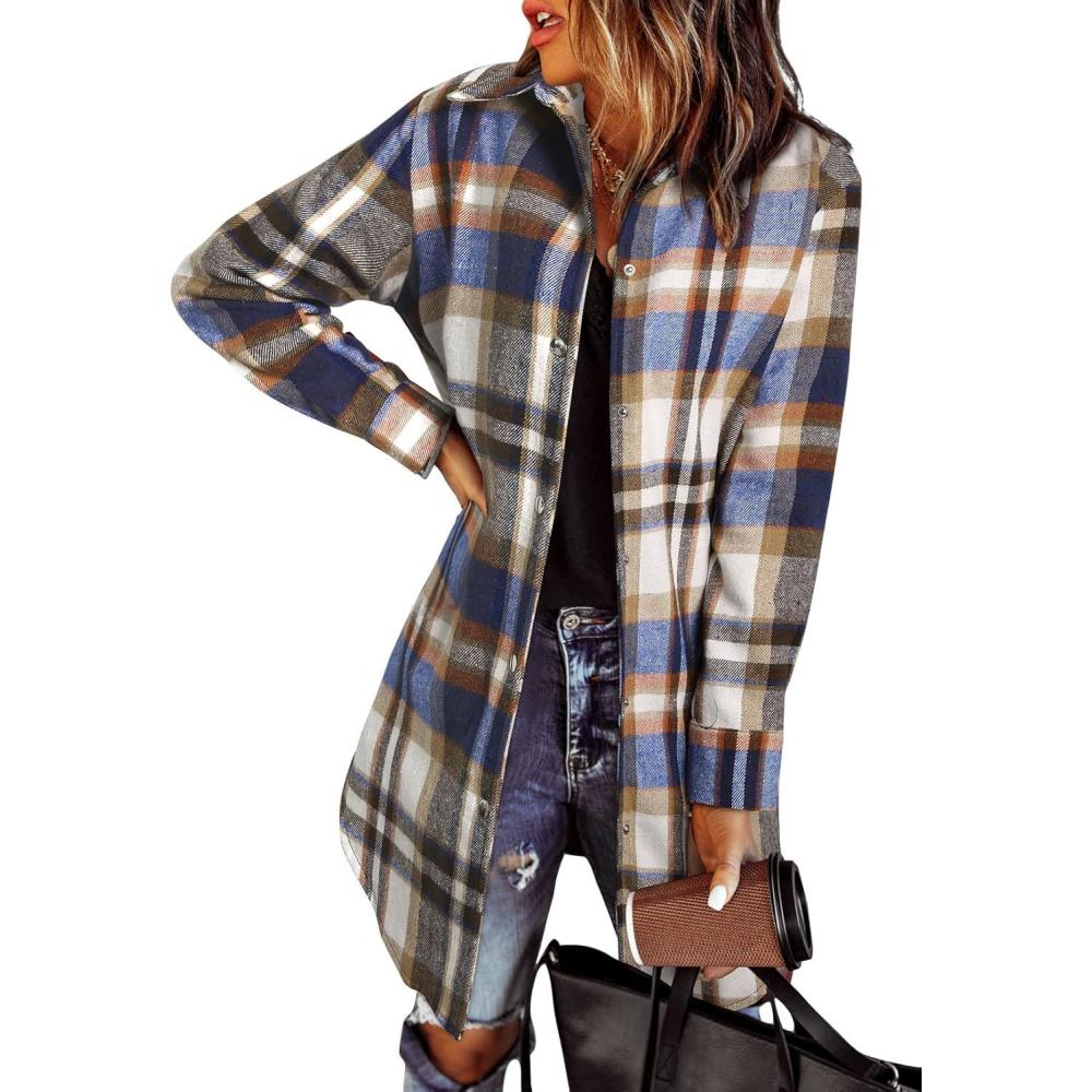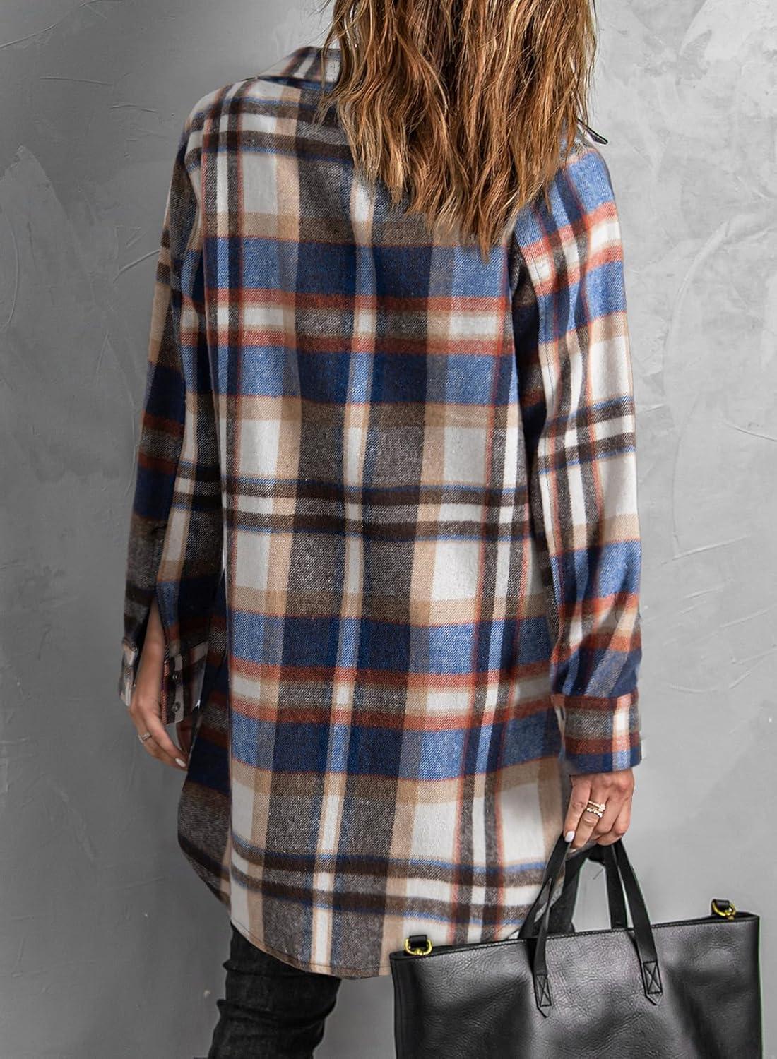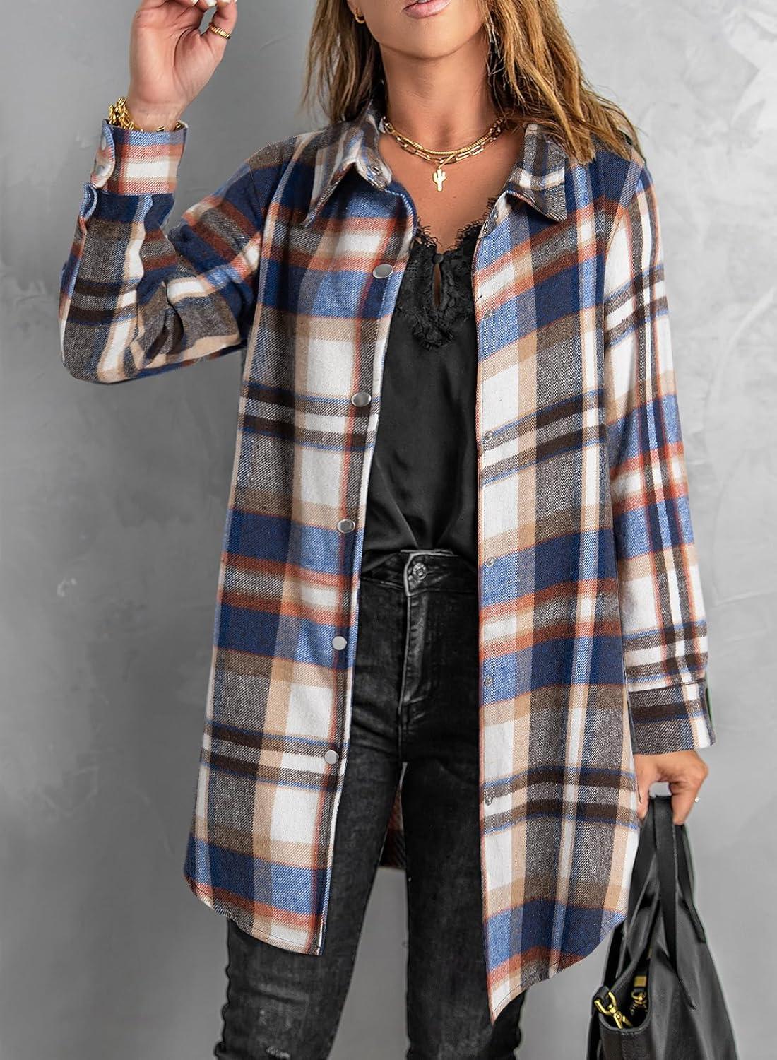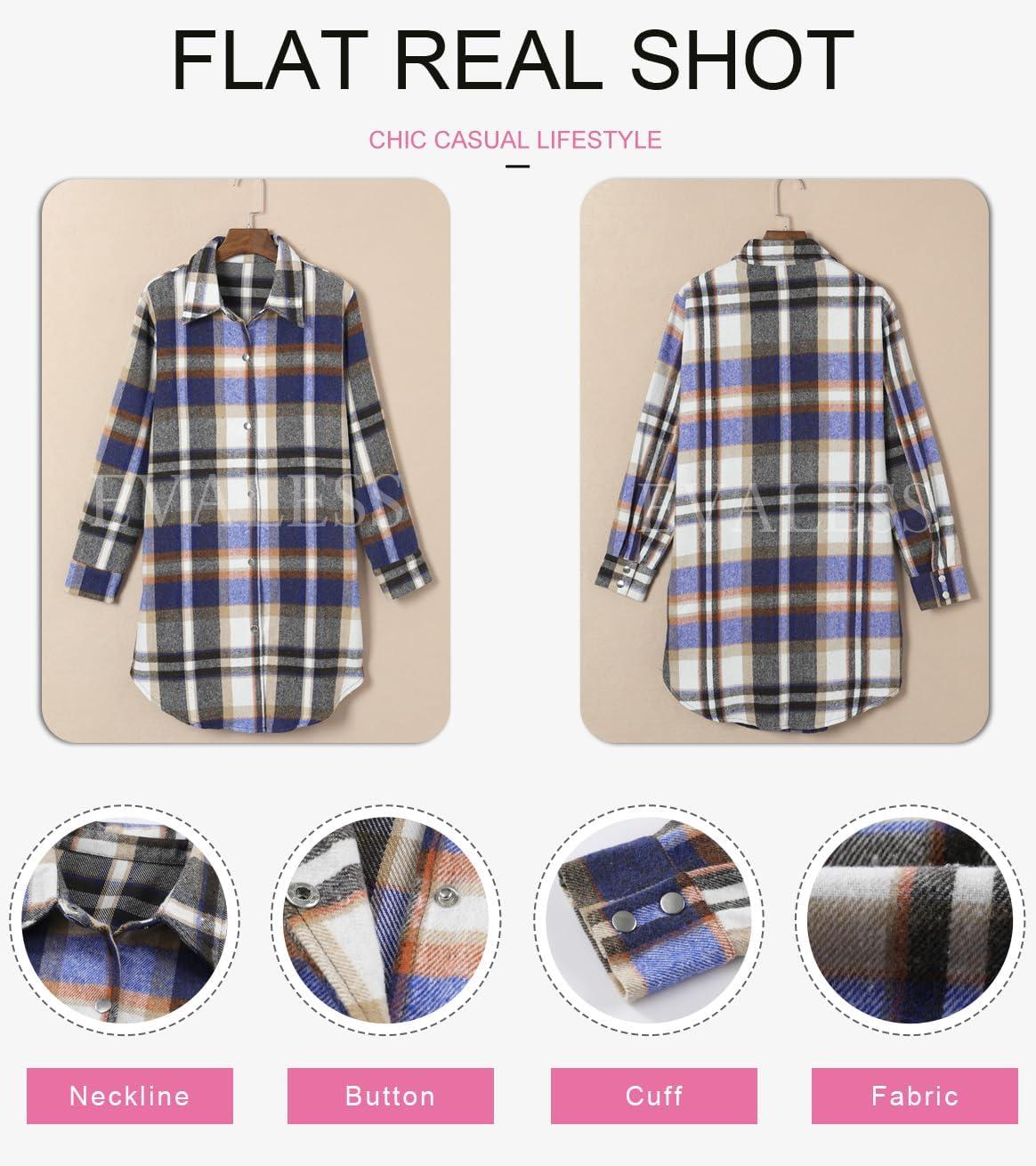 EVALESS Color Block Plaid Shacket Jacket Womens Fall Clothes Fashion Outfits(B3 New Blue)