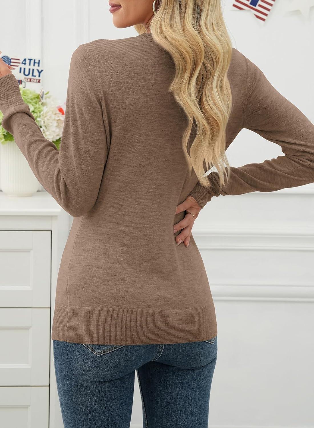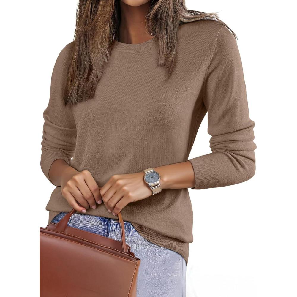 EVALESS Fall Sweaters for Women 2025 Trendy Wool Blend Sweaters Long Sleeve Crewneck Fall Outfits Pullover Sweater Tops(1a Dark Khaki)