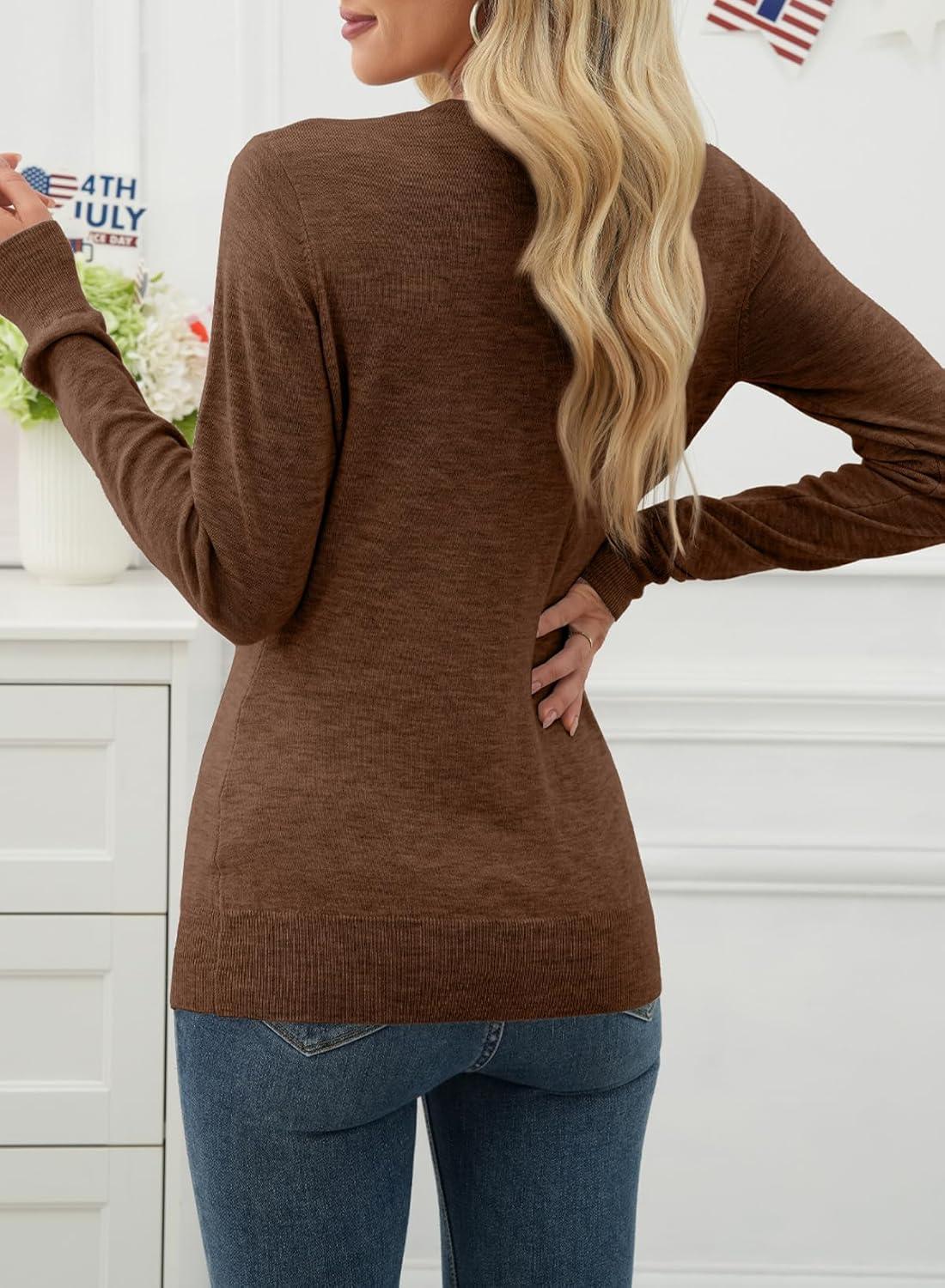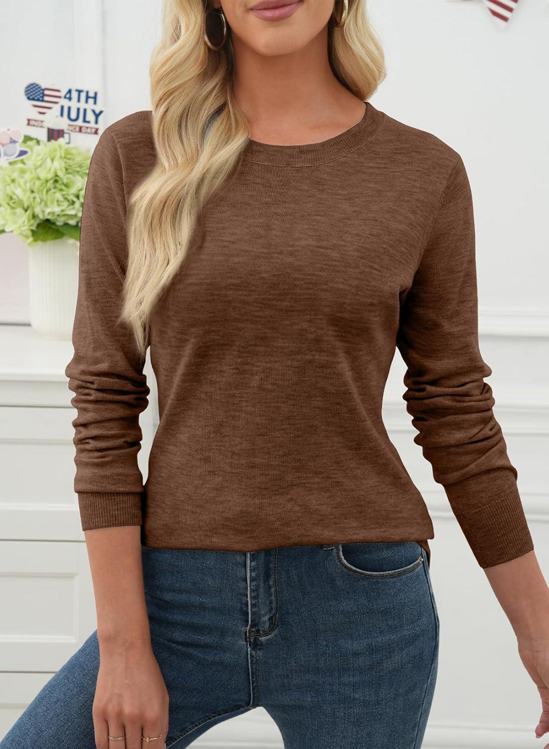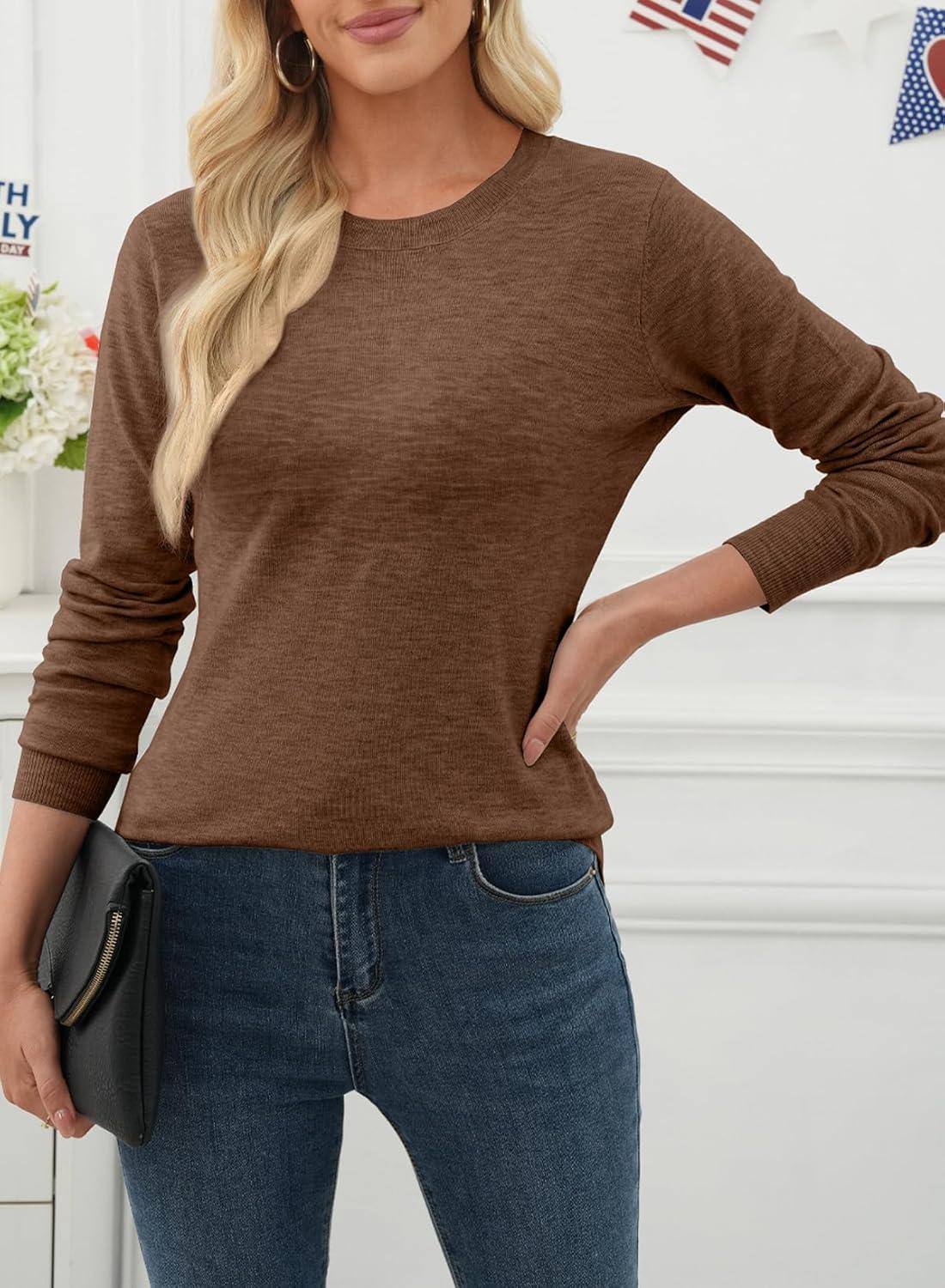 EVALESS Fall Sweaters for Women 2025 Trendy Wool Blend Sweaters Long Sleeve Crewneck Fall Outfits Pullover Sweater Tops(1a Walnut)