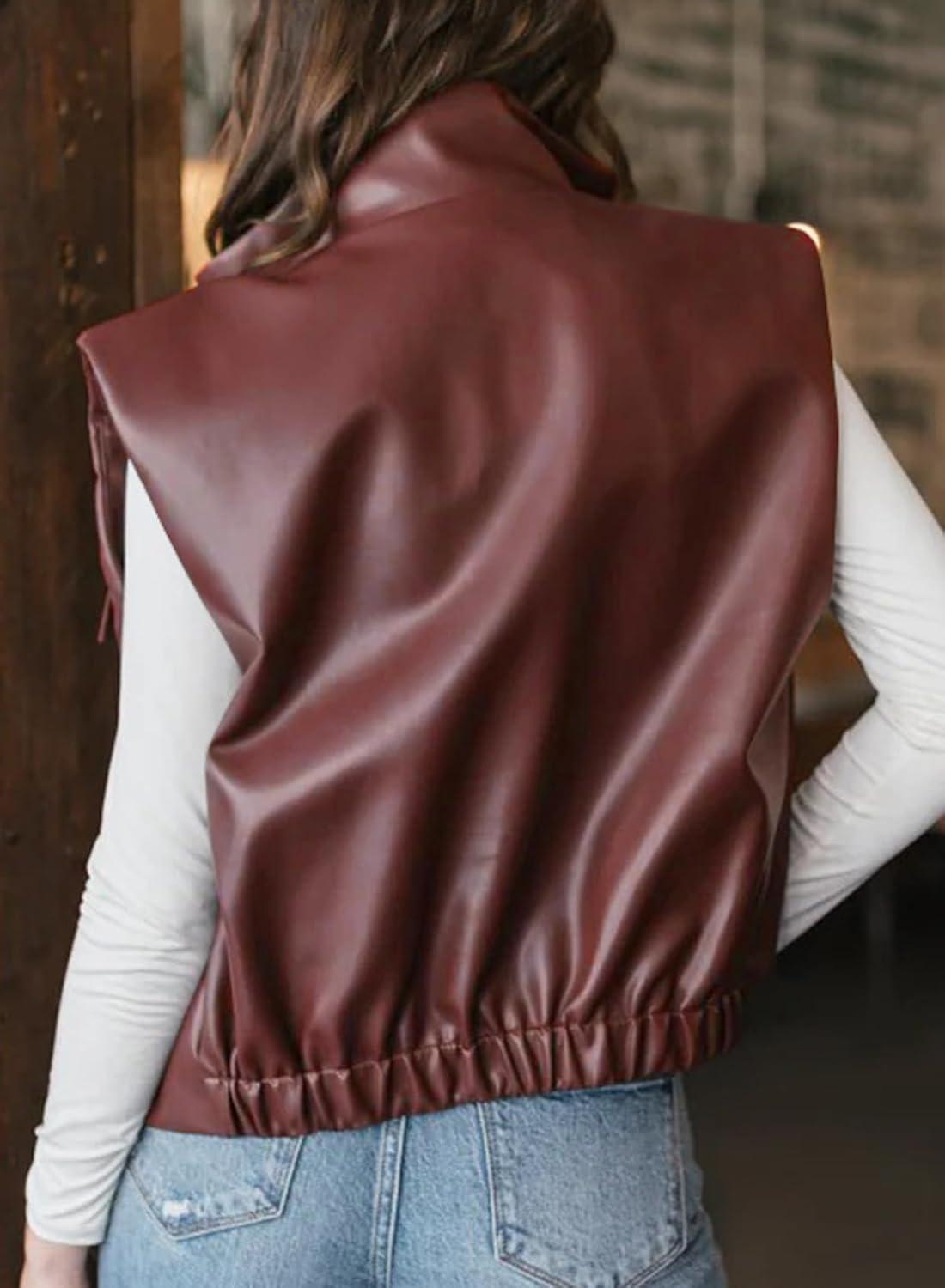 EVALESS Faux Leather Jacket Women Sleeveless Motorcycle Coat Zip Up Vest Jackets Fall Fashion Outfits Winter Clothes(Burgundy)