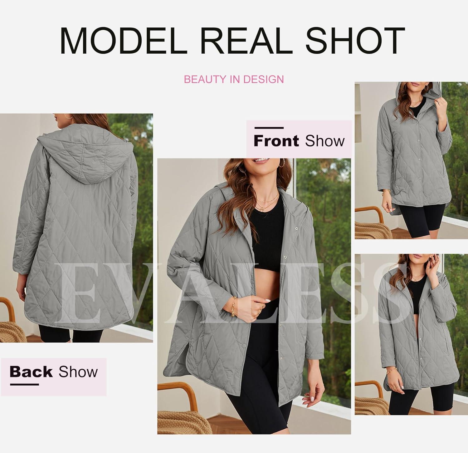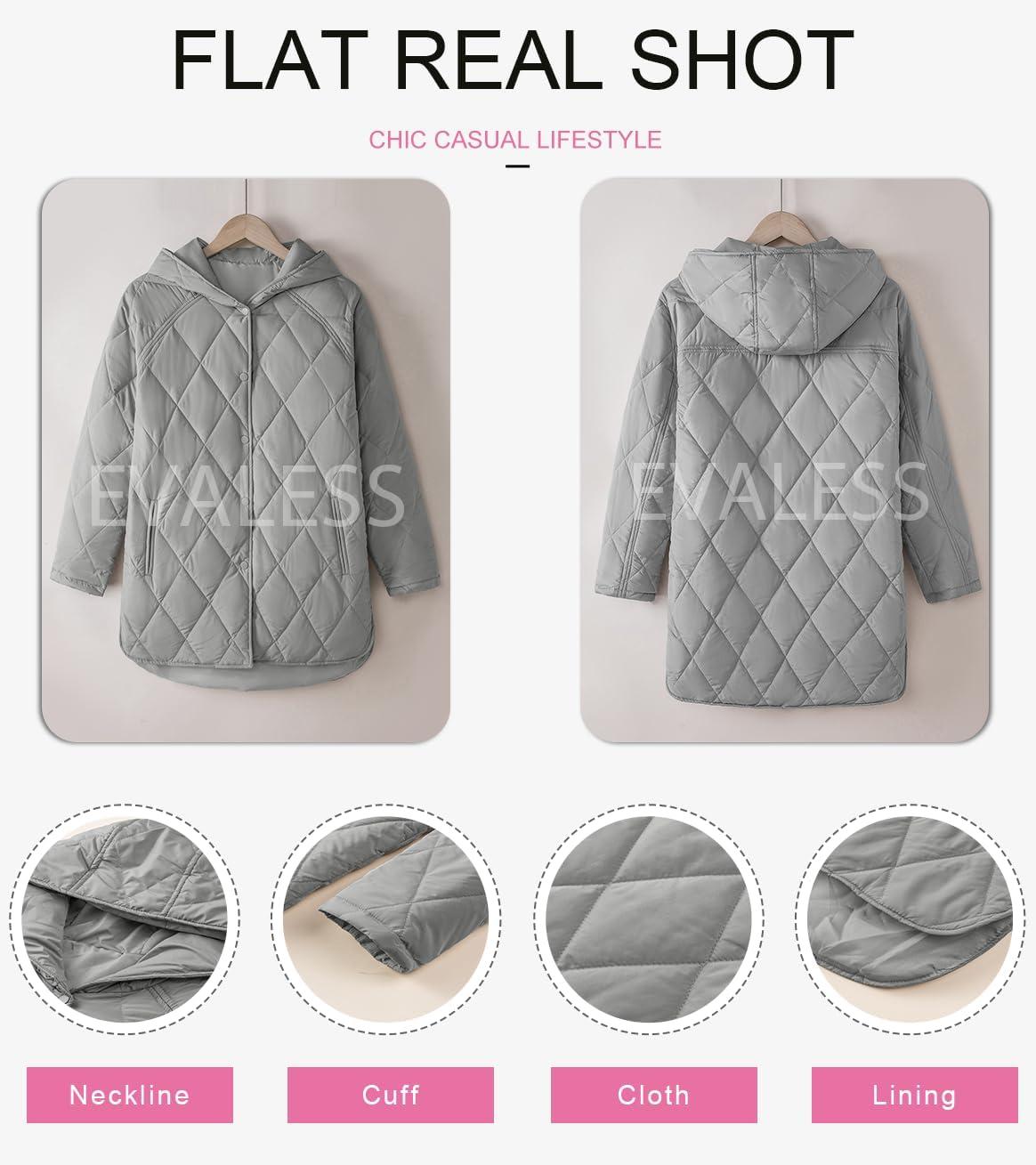 Be the first to review “EVALESS Long Jackets for Women Fashion 2025 Winter Coat for Women Business Casual Diamond Quilted Hooded Lightweight Jackets(Gray)”