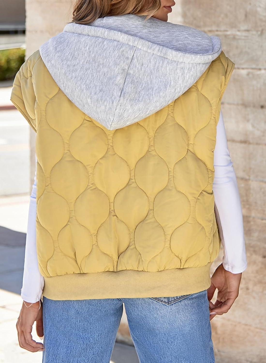 EVALESS Puffer Vest Women Cropped Hooded Zip Up Quilted Sleeveless Jackets 2025 Fall Lightweight Coat with Pockets(Grey)
