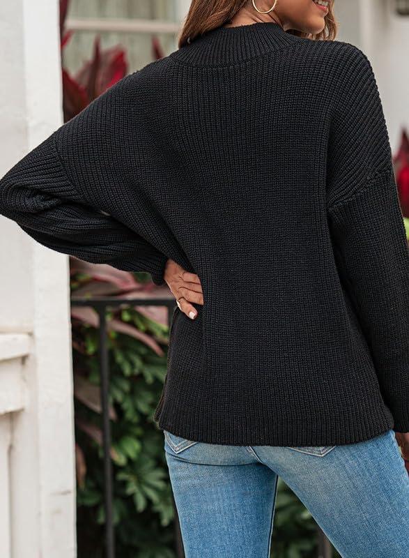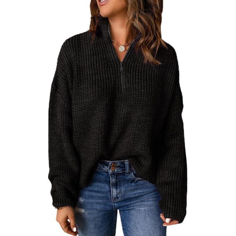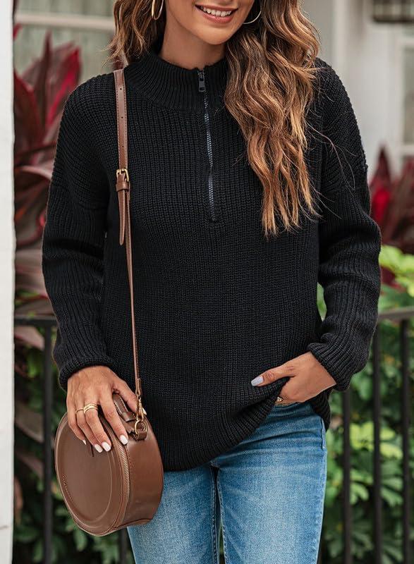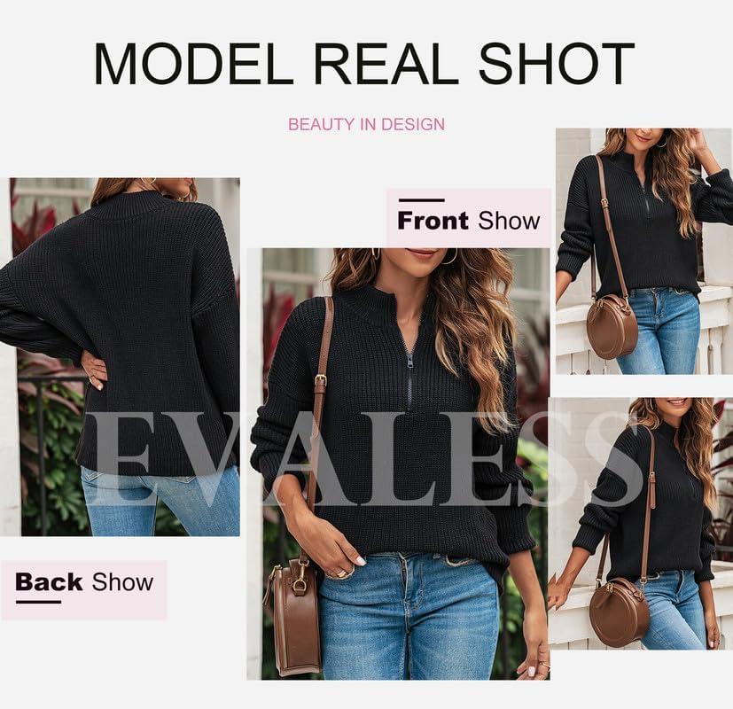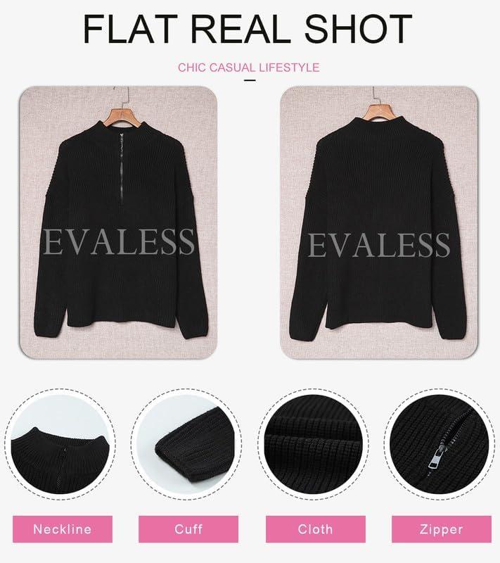 EVALESS Quarter Zip Sweaters for Women Waffle Kint Long Sleeve Pullover Sweater Business Casual Outfits(1 B Black)