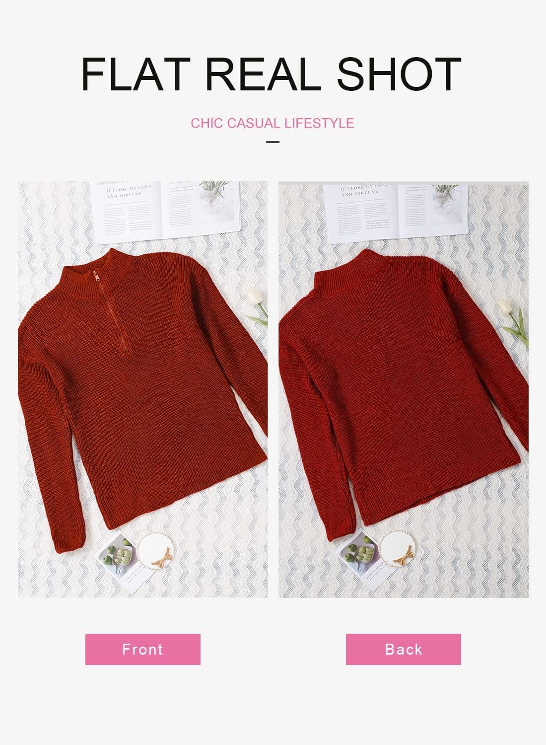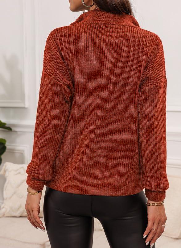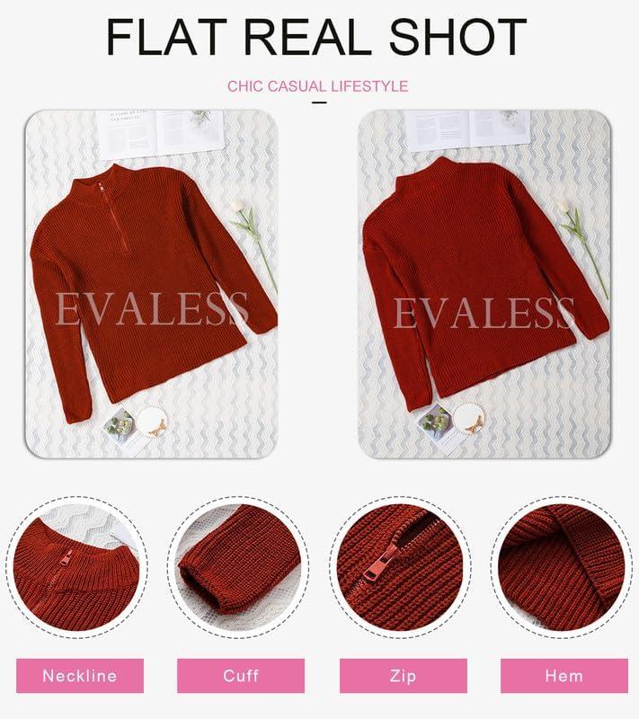 EVALESS Quarter Zip Sweaters for Women Waffle Kint Long Sleeve Pullover Sweater Business Casual Outfits(2 B Red)