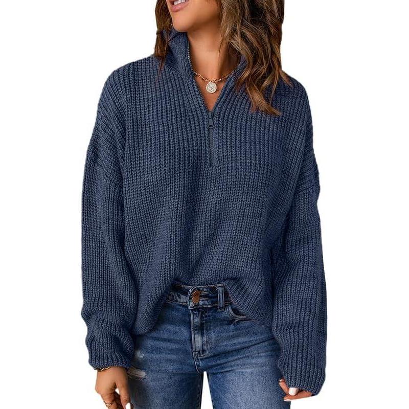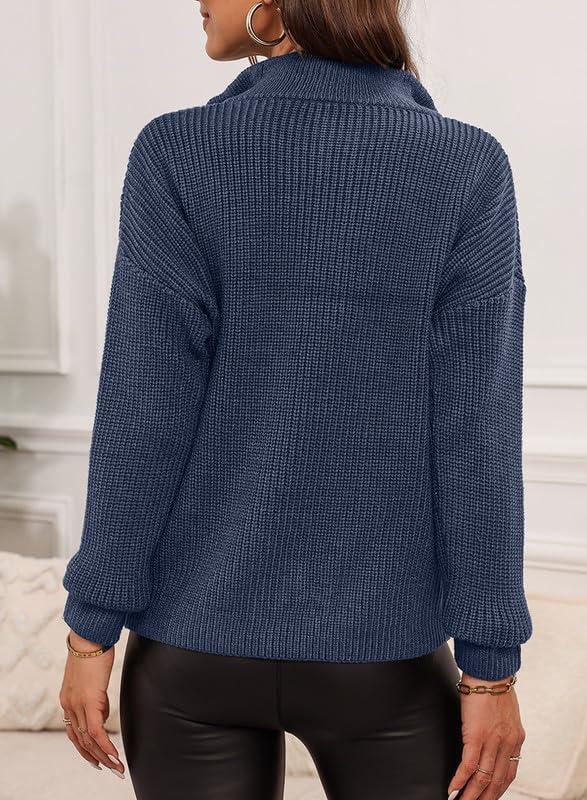 EVALESS Quarter Zip Sweaters for Women Waffle Kint Long Sleeve Pullover Sweater Business Casual Outfits(B Blue)
