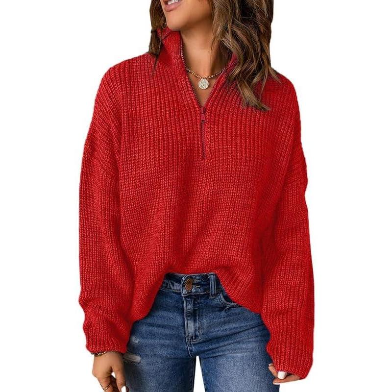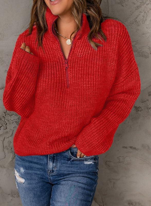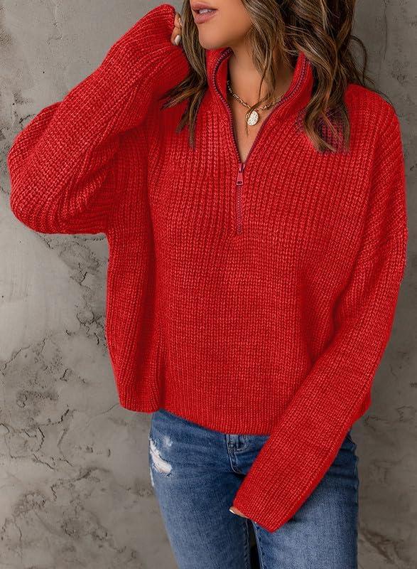 EVALESS Quarter Zip Sweaters for Women Waffle Kint Long Sleeve Pullover Sweater Business Casual Outfits(B Cardinal Red)
