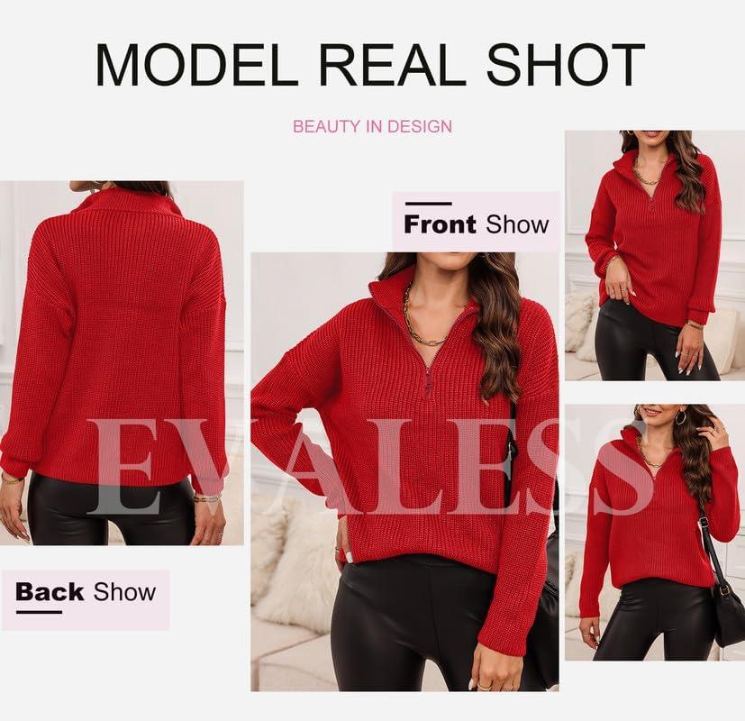 Be the first to review “EVALESS Quarter Zip Sweaters for Women Waffle Kint Long Sleeve Pullover Sweater Business Casual Outfits(B Cardinal Red)”