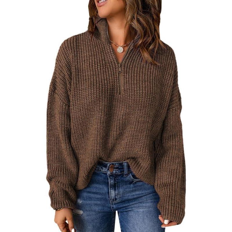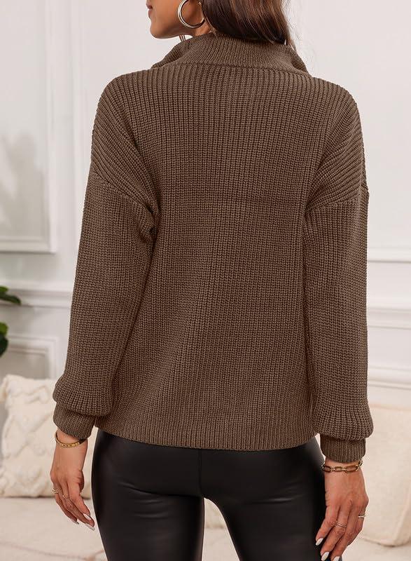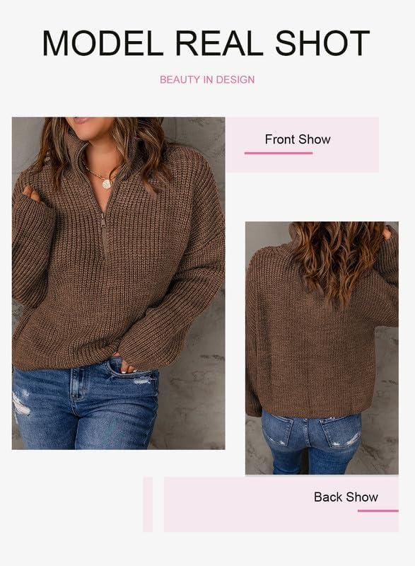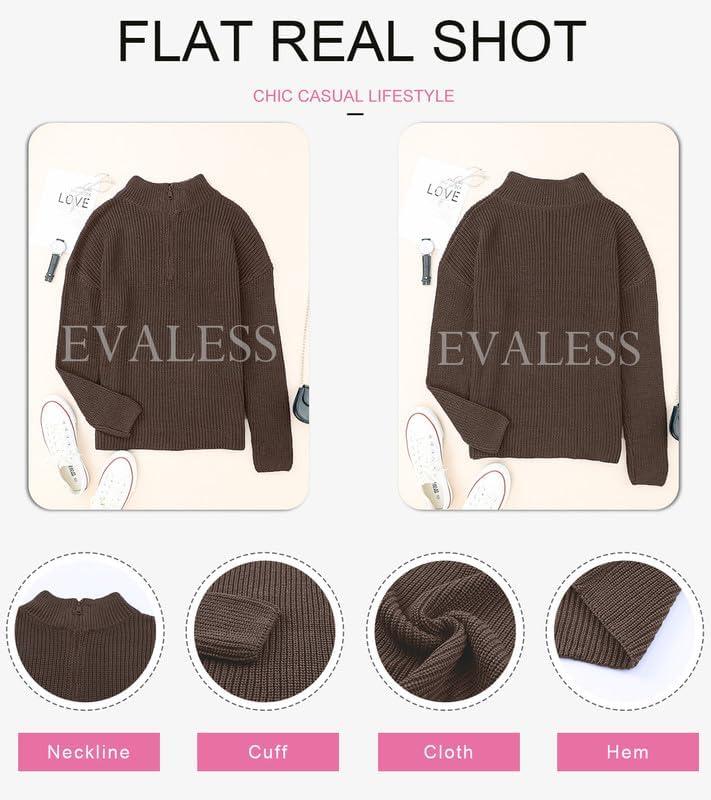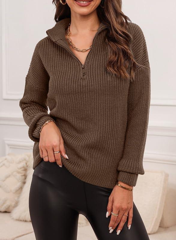 EVALESS Quarter Zip Sweaters for Women Waffle Kint Long Sleeve Pullover Sweater Business Casual Outfits(B Grey Brown)