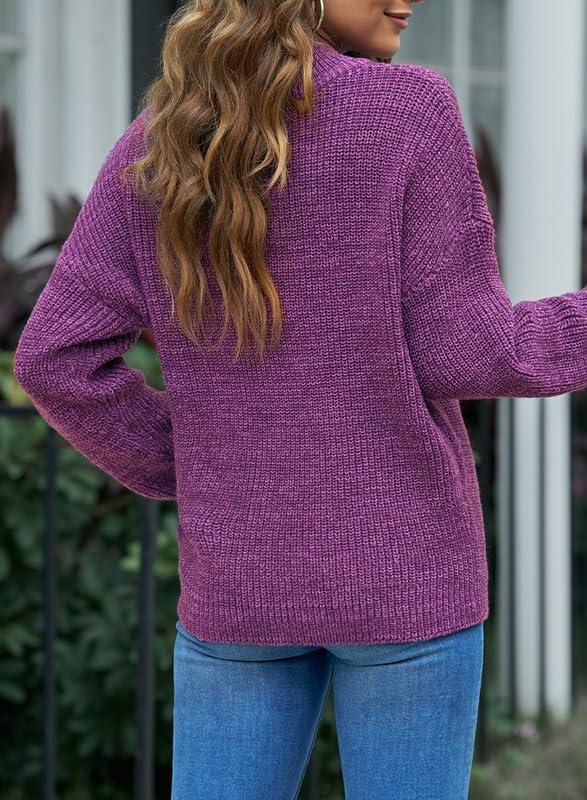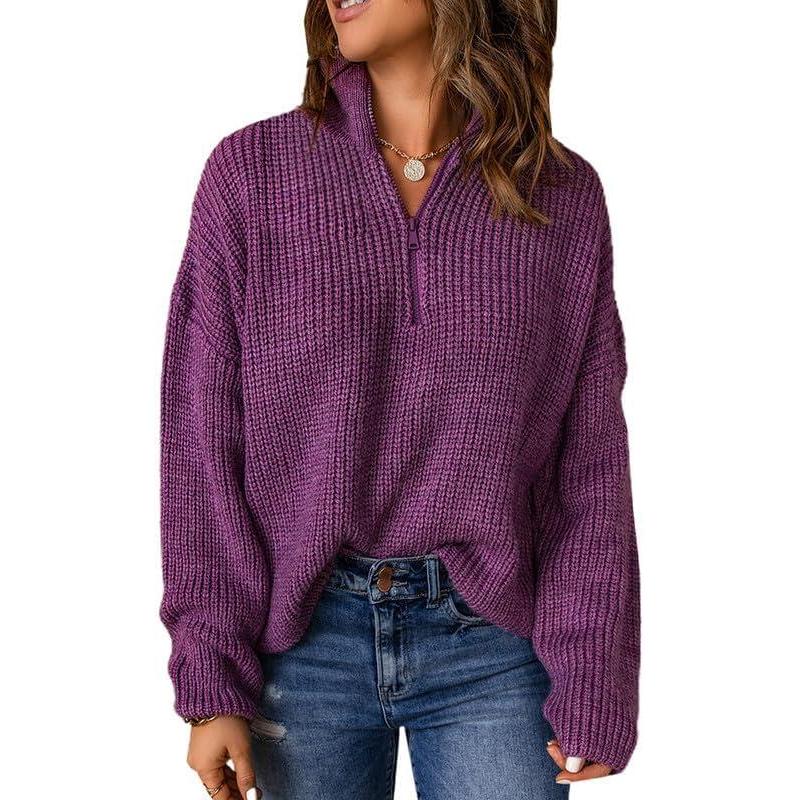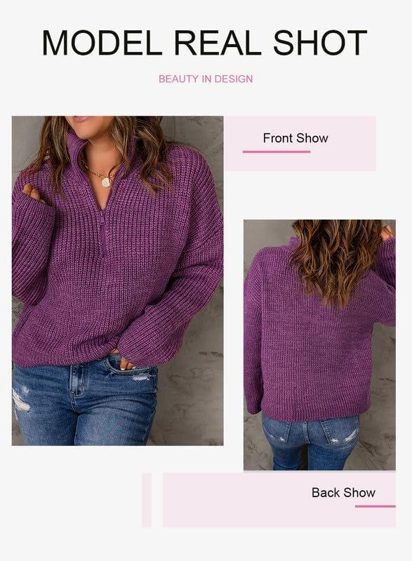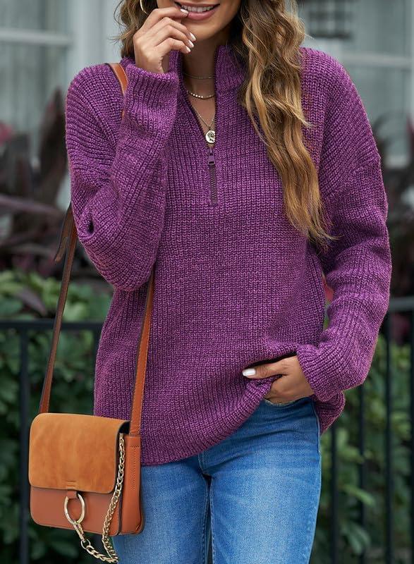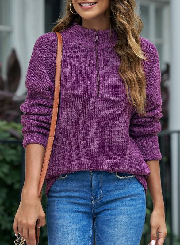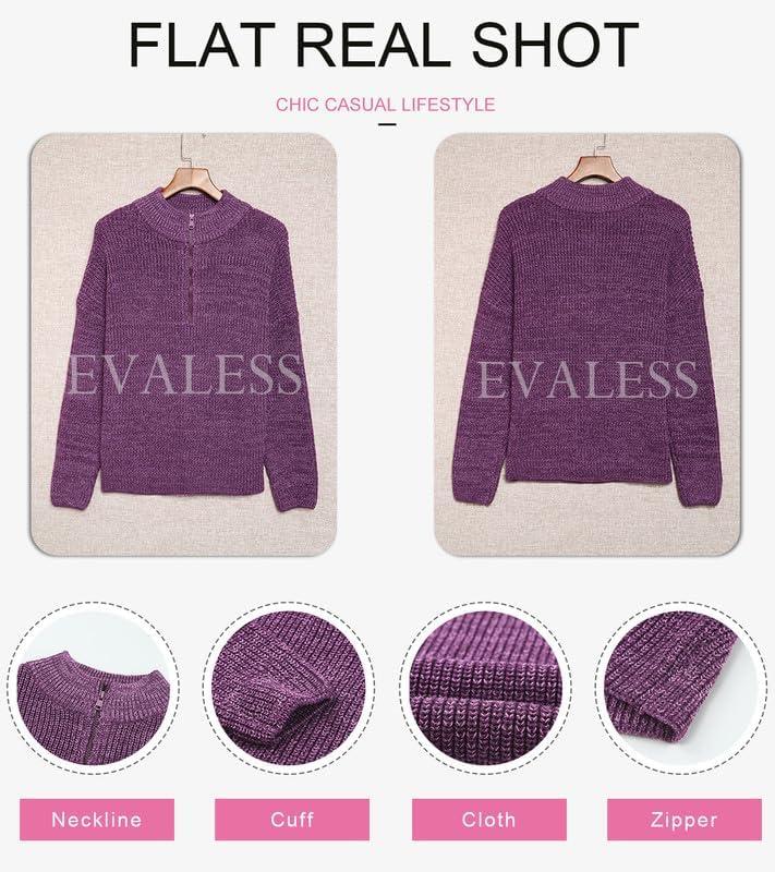 EVALESS Quarter Zip Sweaters for Women Waffle Kint Long Sleeve Pullover Sweater Business Casual Outfits(B Purple)
