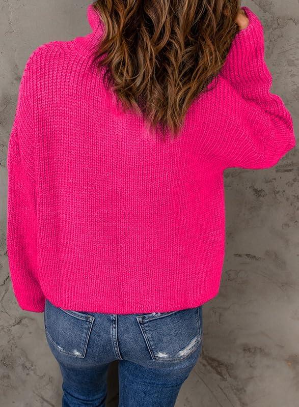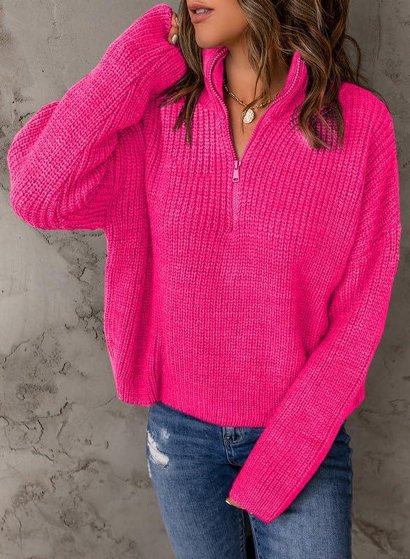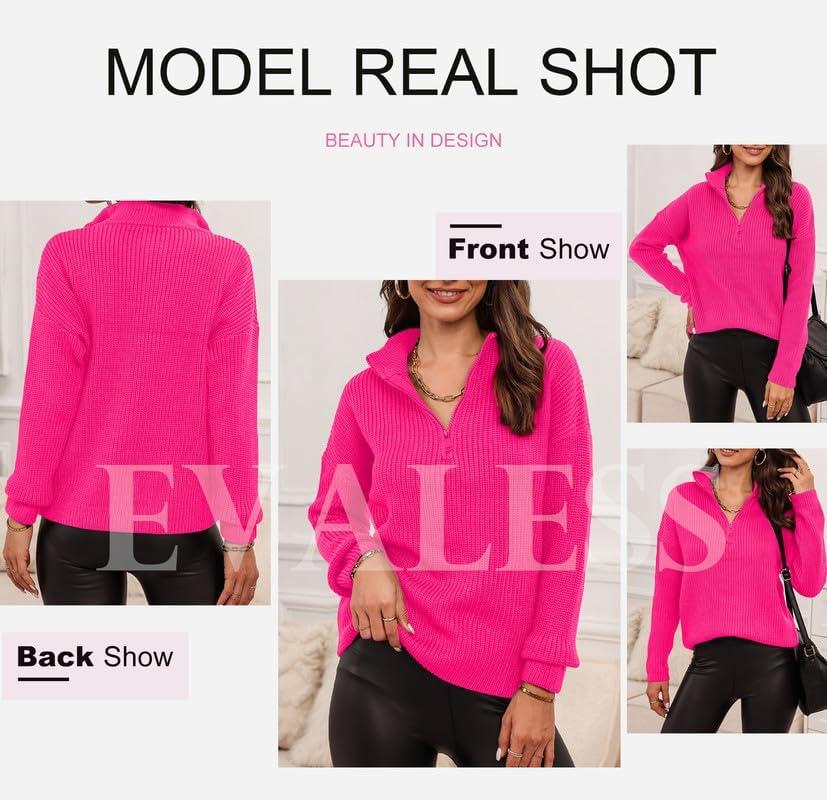 EVALESS Quarter Zip Sweaters for Women Waffle Kint Long Sleeve Pullover Sweater Business Casual Outfits(B Rose)
