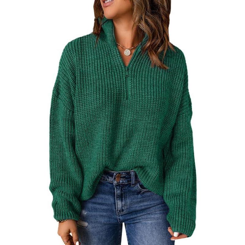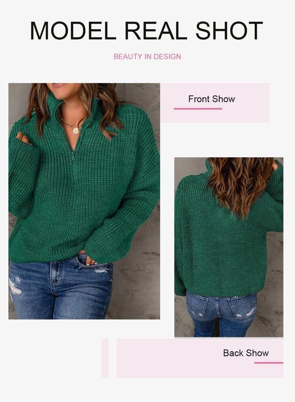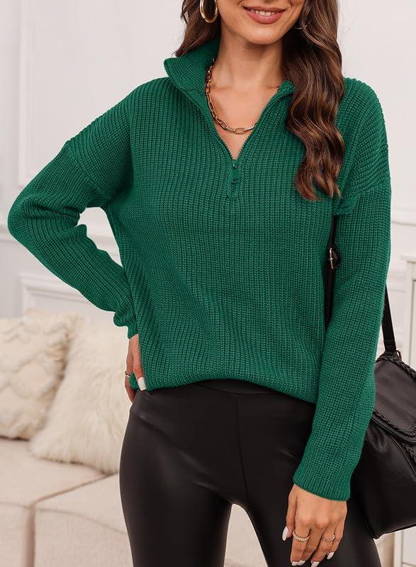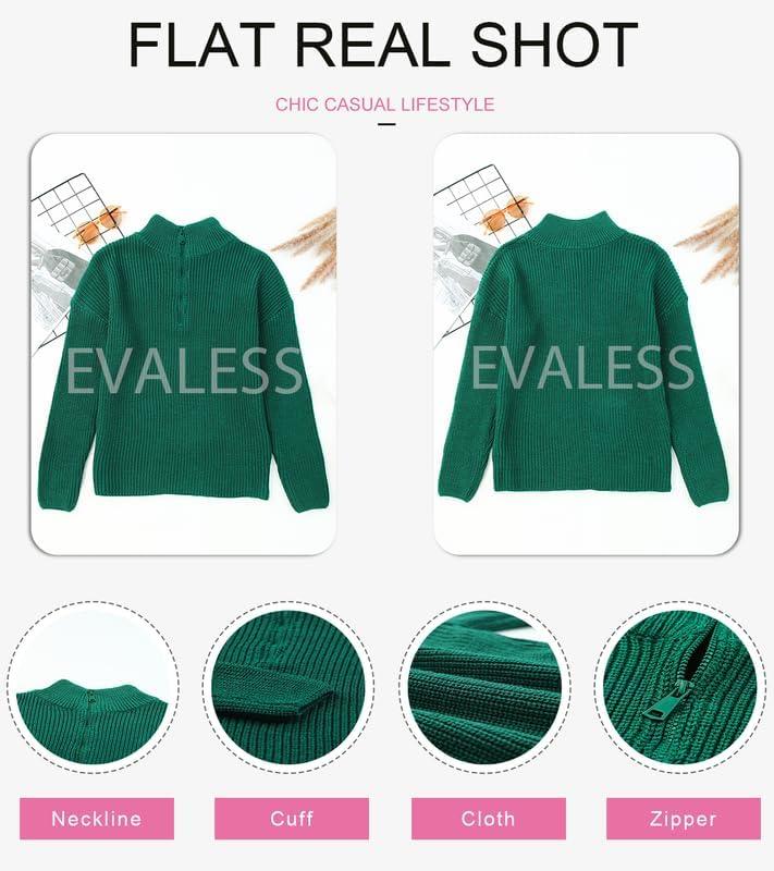 EVALESS Quarter Zip Sweaters for Women Waffle Kint Long Sleeve Pullover Sweater Business Casual Outfits(B Viridian)