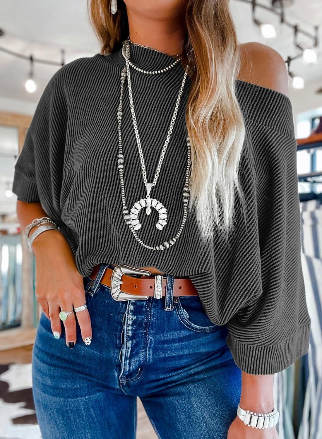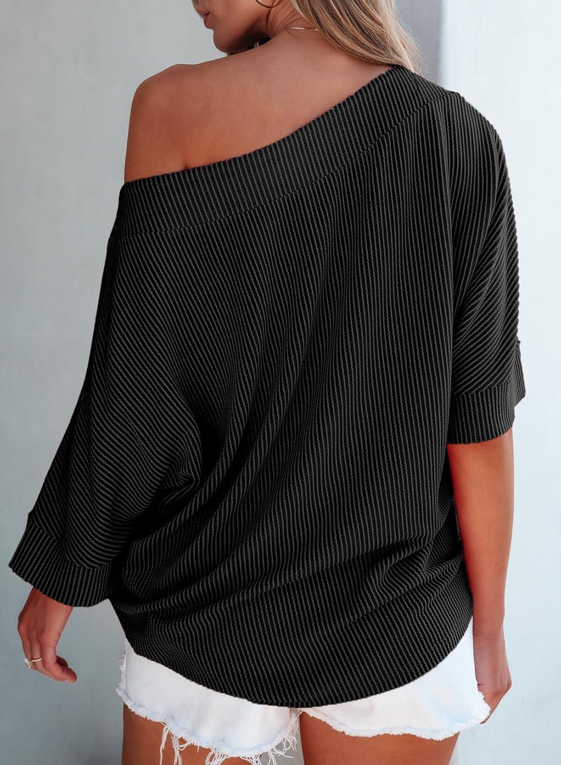 Be the first to review “EVALESS Sexy Off The Shoulder Tops for Women 3/4 Length Sleeve Womens Tops Spring Fall 2025 Boat Neck One Shoulder Shirts(Black)”