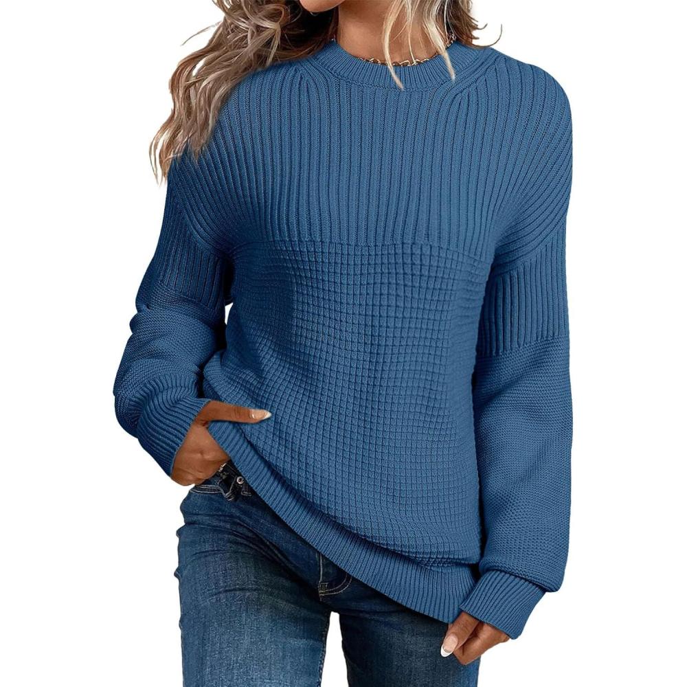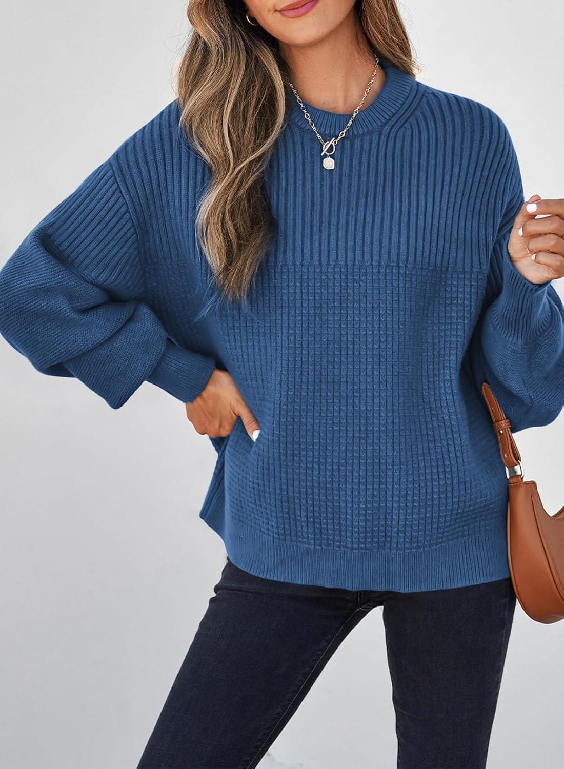 EVALESS Sweaters for Women Cute Lantern Sleeve Pullover Sweater Cable Knit Tops Fall Fashion Clothes Teacher Outfits(Blue)