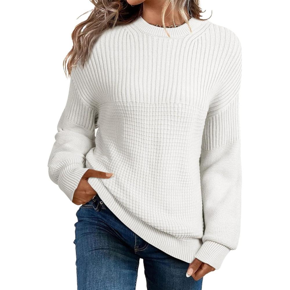 EVALESS Sweaters for Women Cute Lantern Sleeve Pullover Sweater Cable Knit Tops Fall Fashion Clothes Teacher Outfits(White)