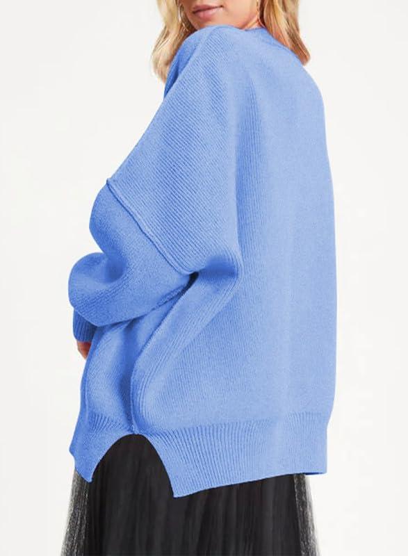EVALESS Sweaters for Women Fashion 2024 Crewneck Batwing Sleeve Oversized Side Slit Ribbed Knit Pullover Sweater Tops(Sky Blue)