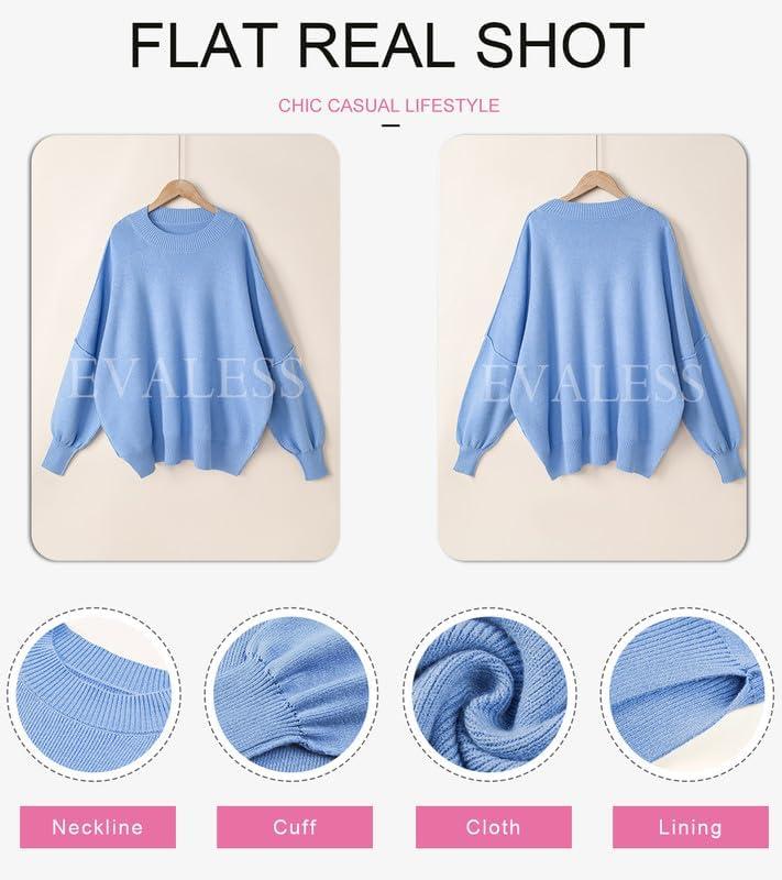 Be the first to review “EVALESS Sweaters for Women Fashion 2024 Crewneck Batwing Sleeve Oversized Side Slit Ribbed Knit Pullover Sweater Tops(Sky Blue)”
