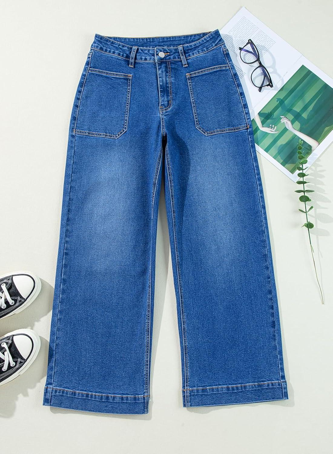 EVALESS Wide Leg Jeans for Women Trendy High Waisted Stretchy Baggy Denim Pants(Iceland Blue)