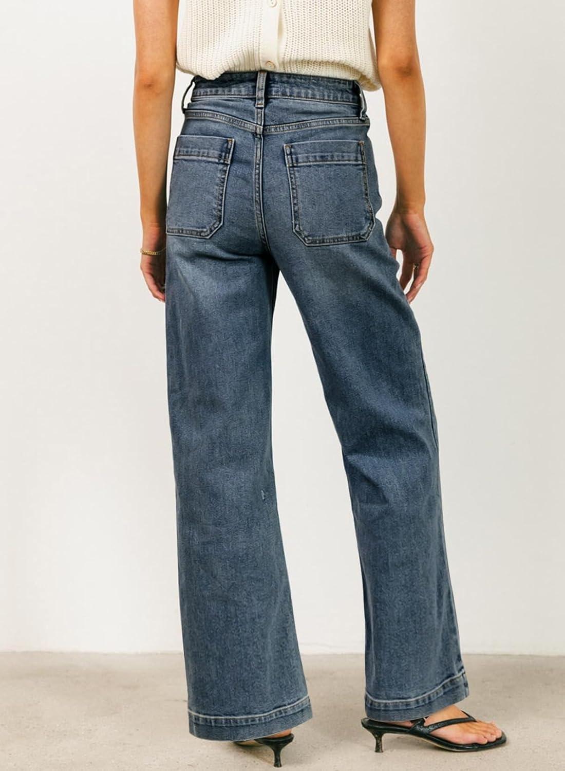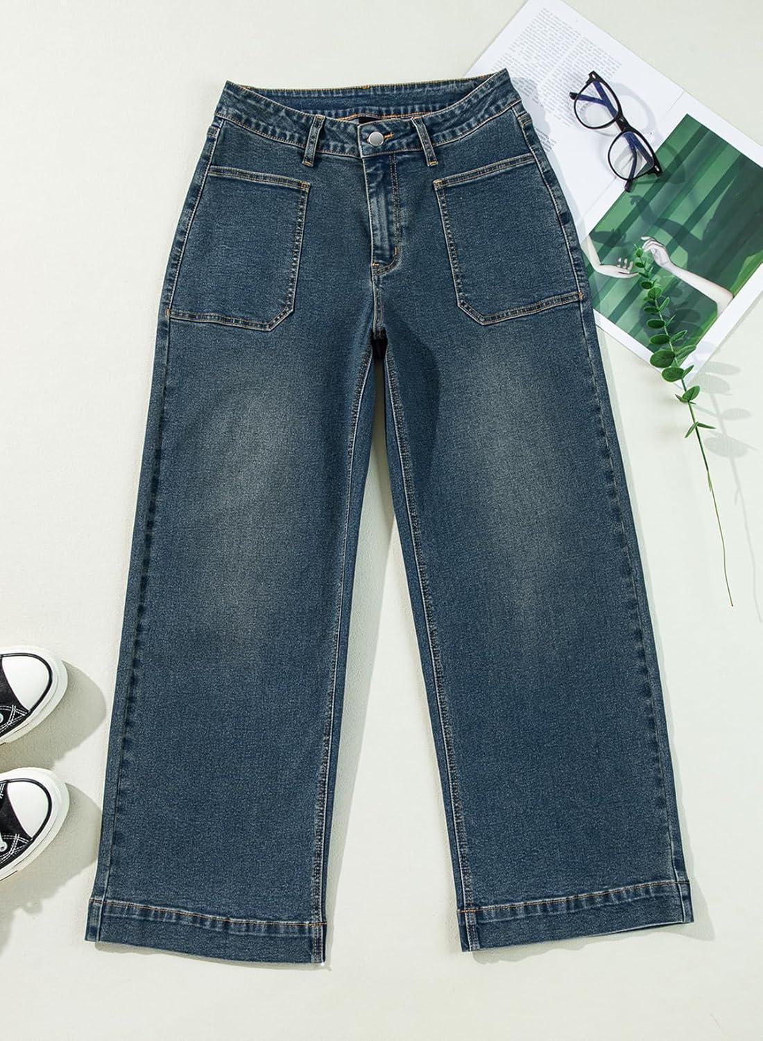 EVALESS Wide Leg Jeans for Women Trendy High Waisted Stretchy Baggy Denim Pants(Prussian Blue)