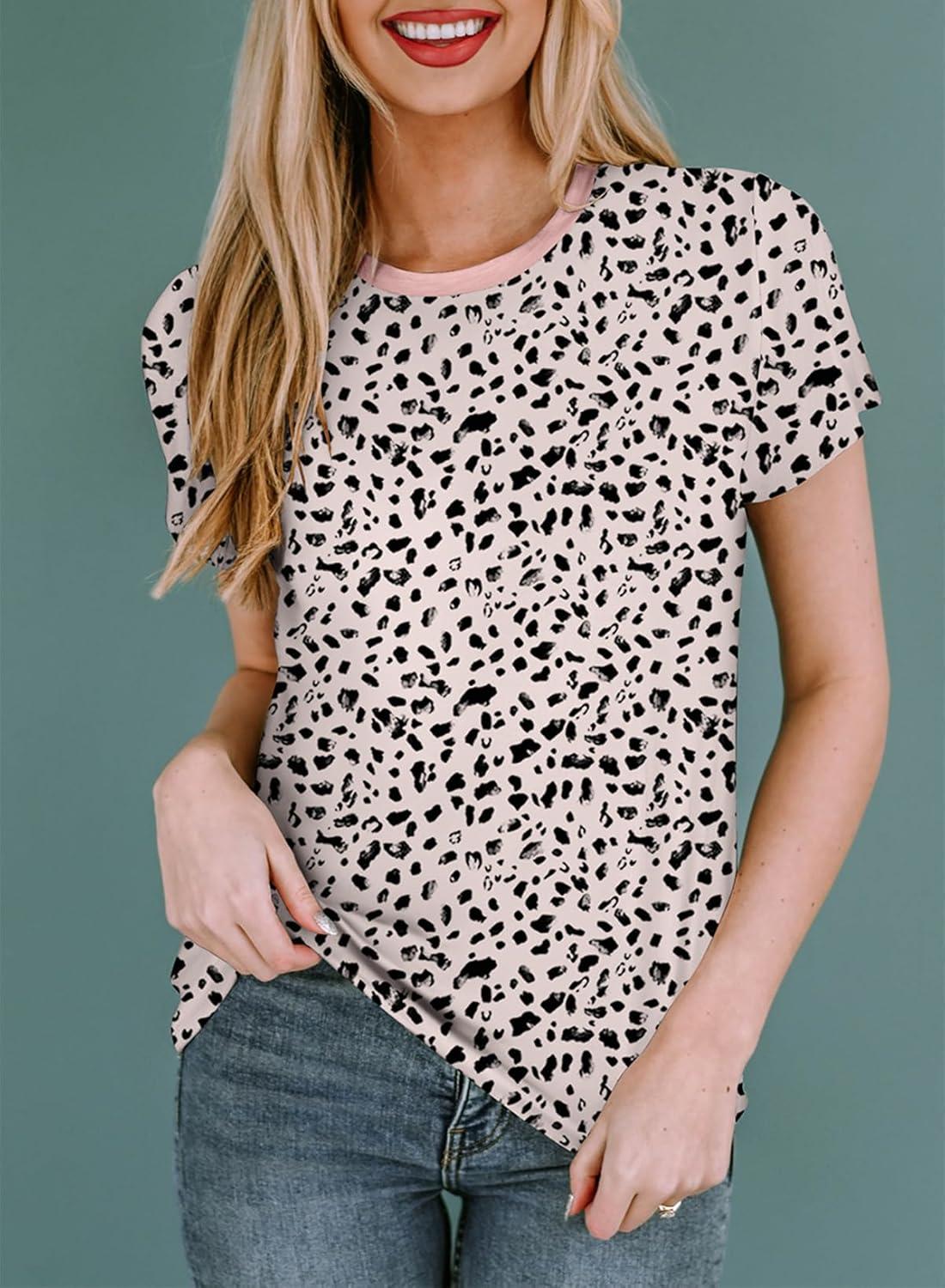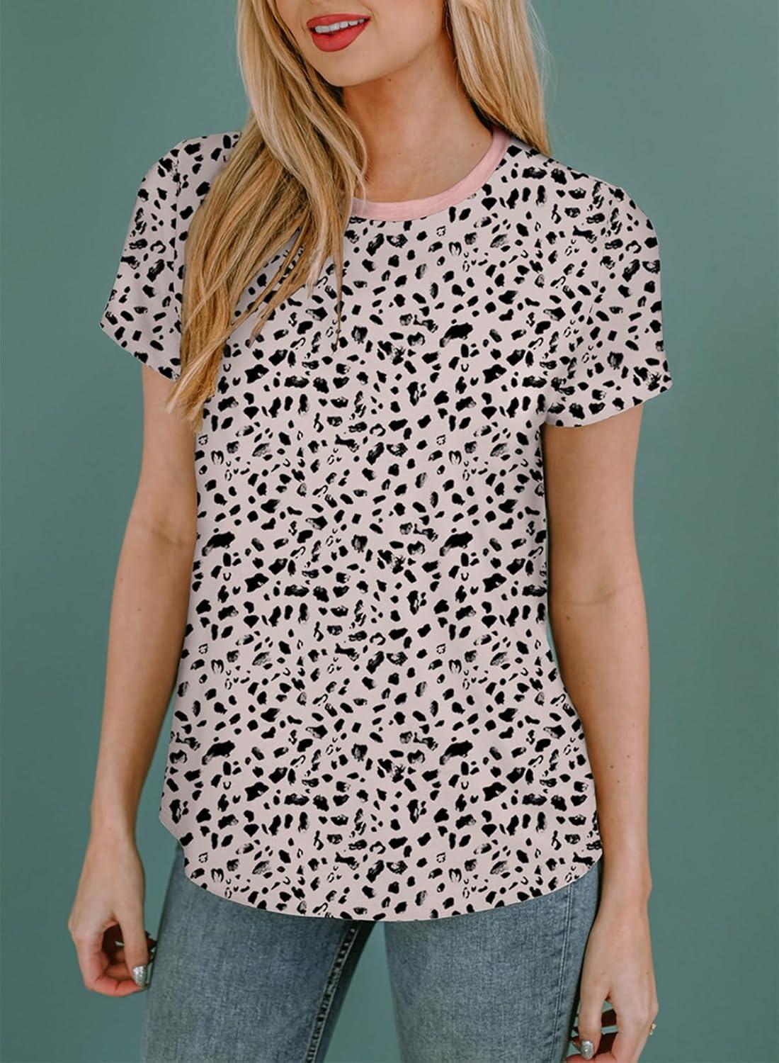 EVALESS Womens Casual Polka Dot Tops Crewneck Short Sleeve T Shirts Fashion Outfits 2026 Spring Summer Shirts(3b Apricot)