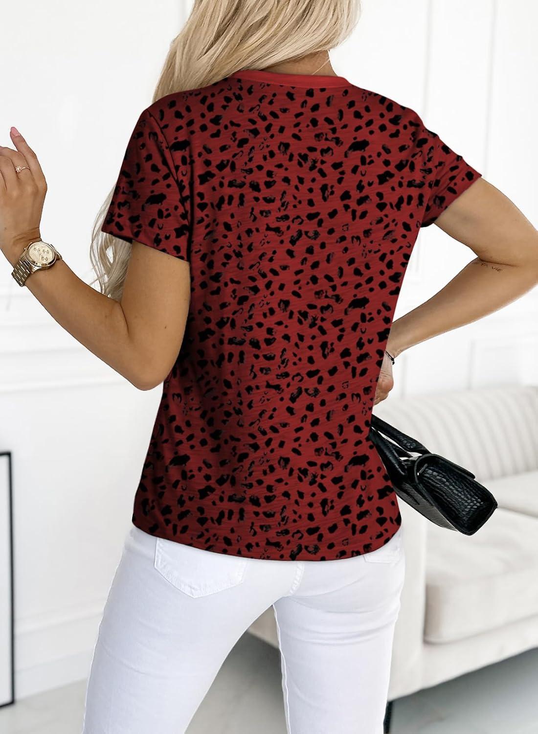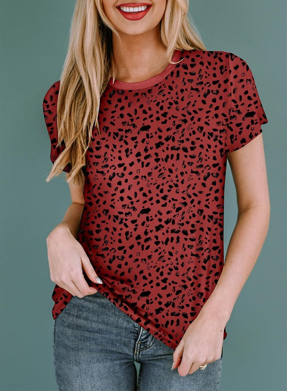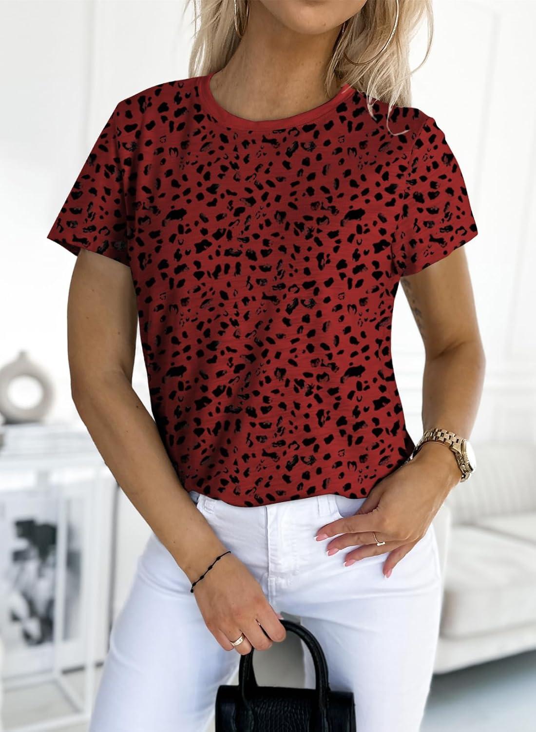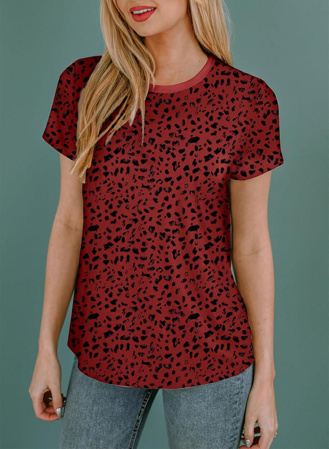 EVALESS Womens Casual Polka Dot Tops Crewneck Short Sleeve T Shirts Fashion Outfits 2026 Spring Summer Shirts(E Ruby)