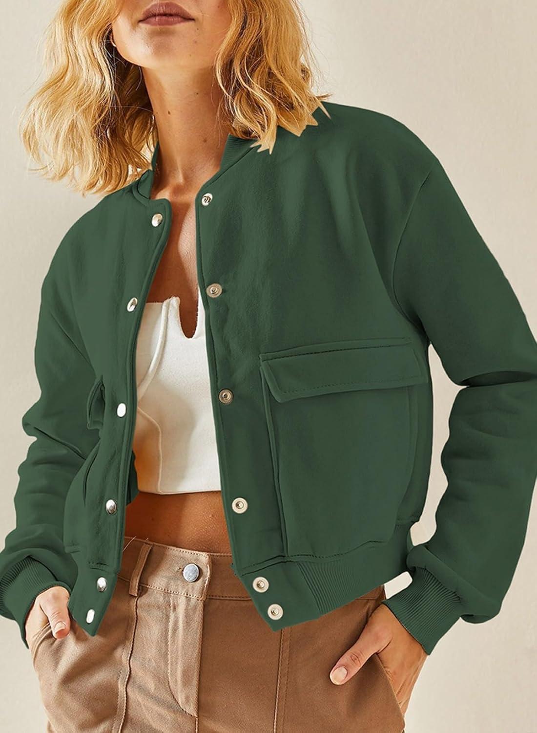 Be the first to review “EVALESS Womens Crop Jacket Long Sleeve Shacket Lightweight Fall 2025 Casual Coat with Pockets(Blackish Green)”