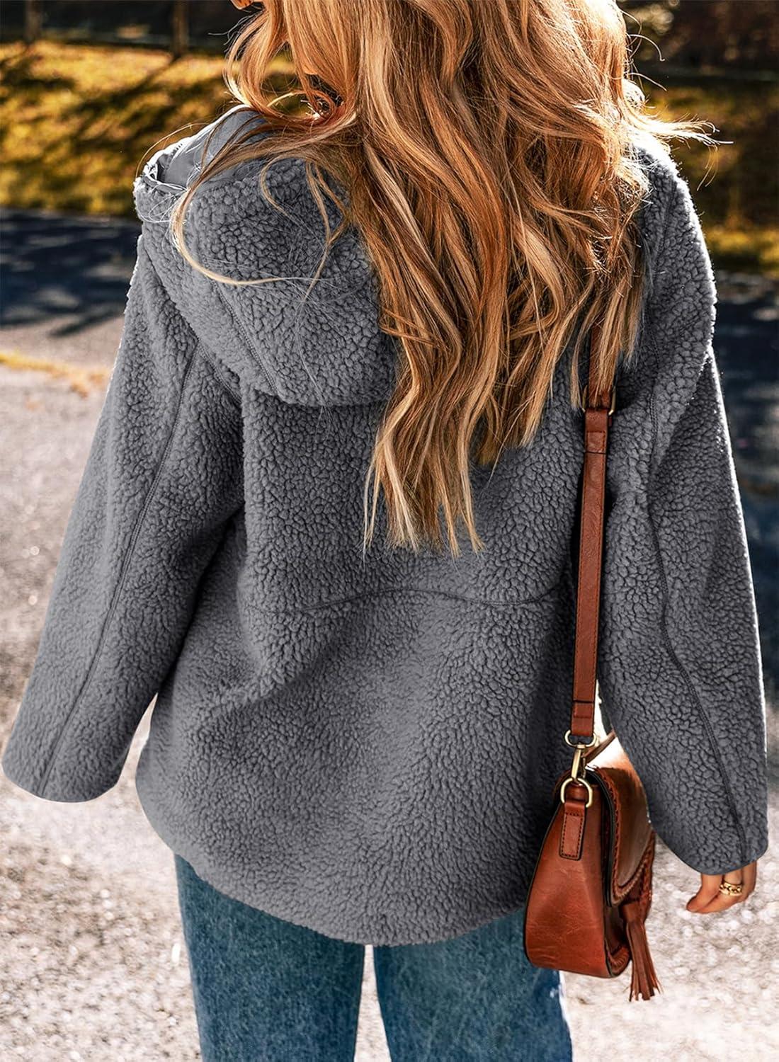 EVALESS Womens Fleece Jacket Long Sleeve Zip Up Sherpa Coats 2025 Fall Winter Trendy Fuzzy Hooded Jackets with Pockets(Dark Grey)