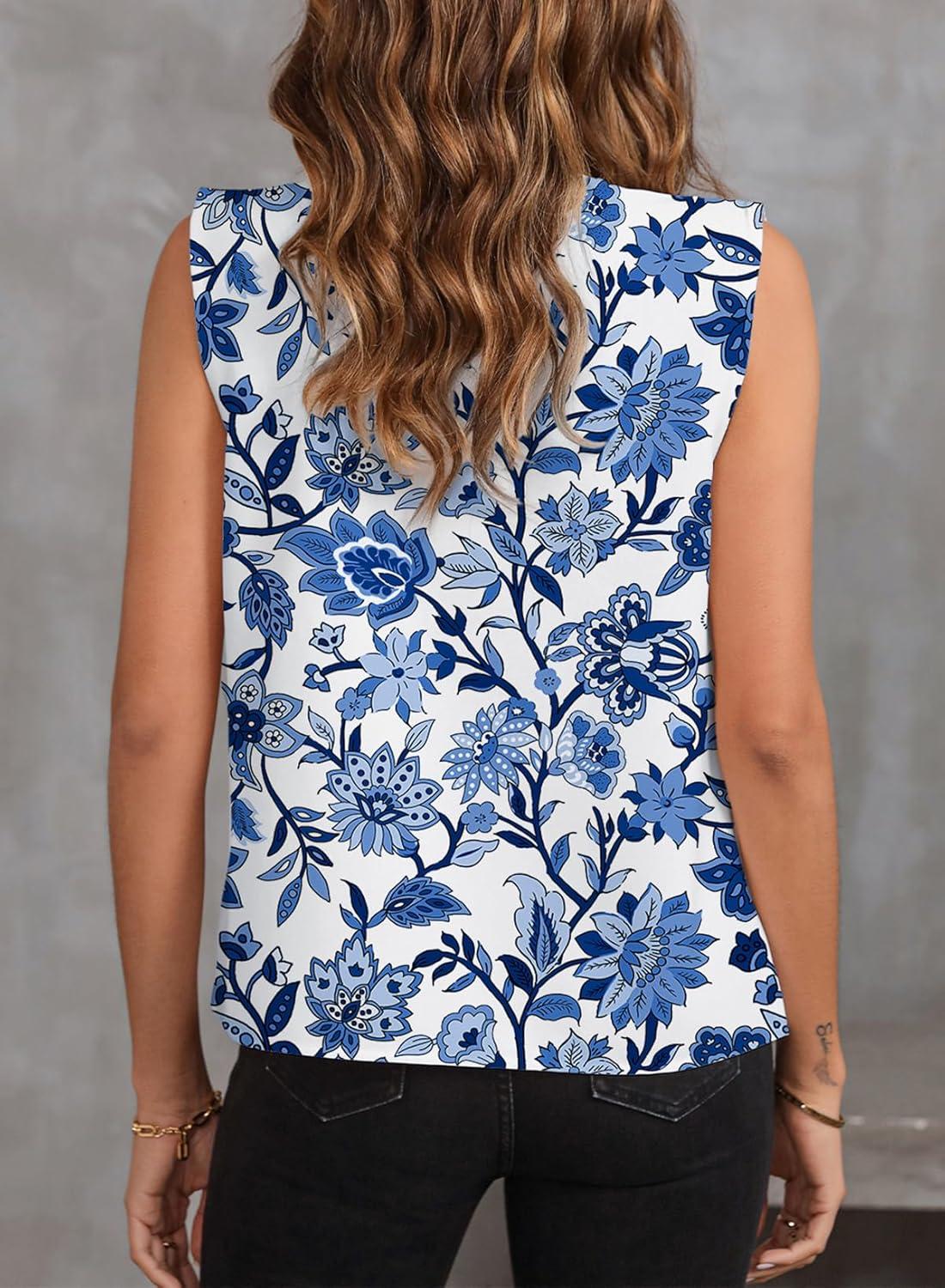 EVALESS Womens Pleated Tank Tops V Neck Casual Sleeveless Blouses Summer Basic Vest Shirt(Z Blue)