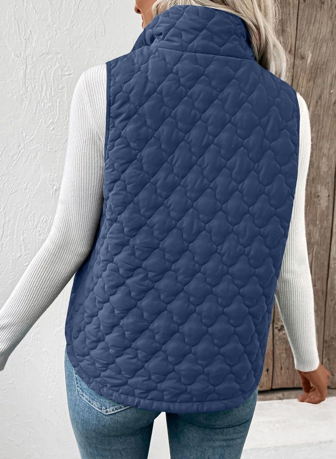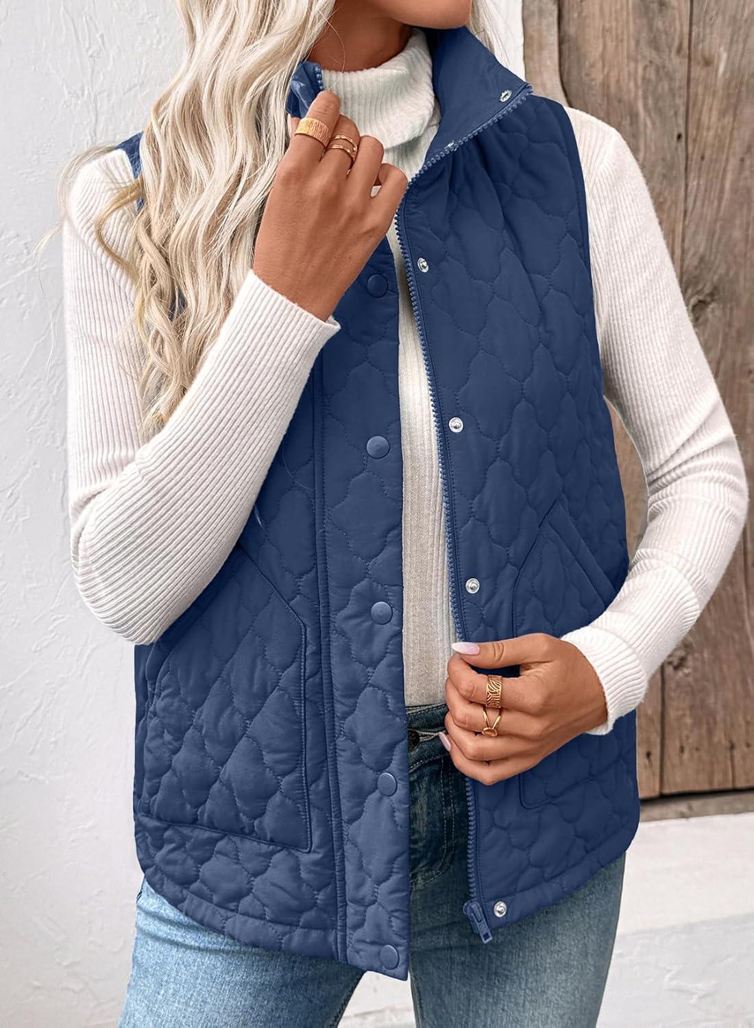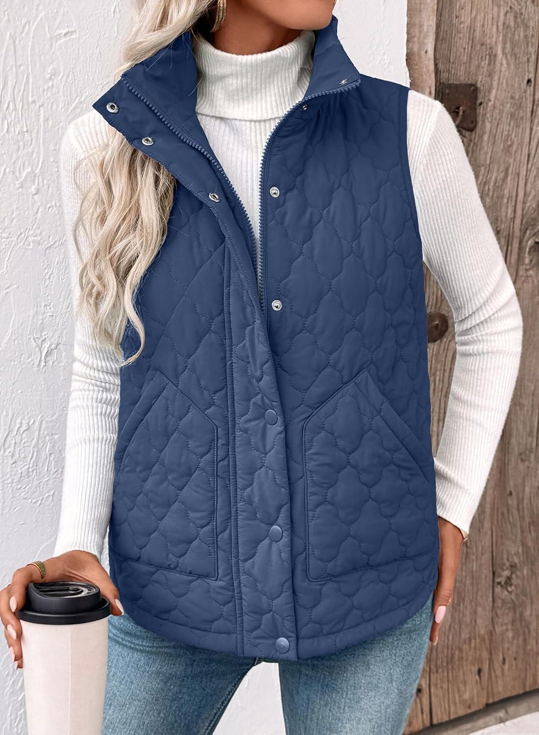 EVALESS Womens Puffer Vest Lightweight Stand Collar Sleeveless Cropped Quilted Jackets Button Fall Zip Up Coat Outerwear(Real Teal)