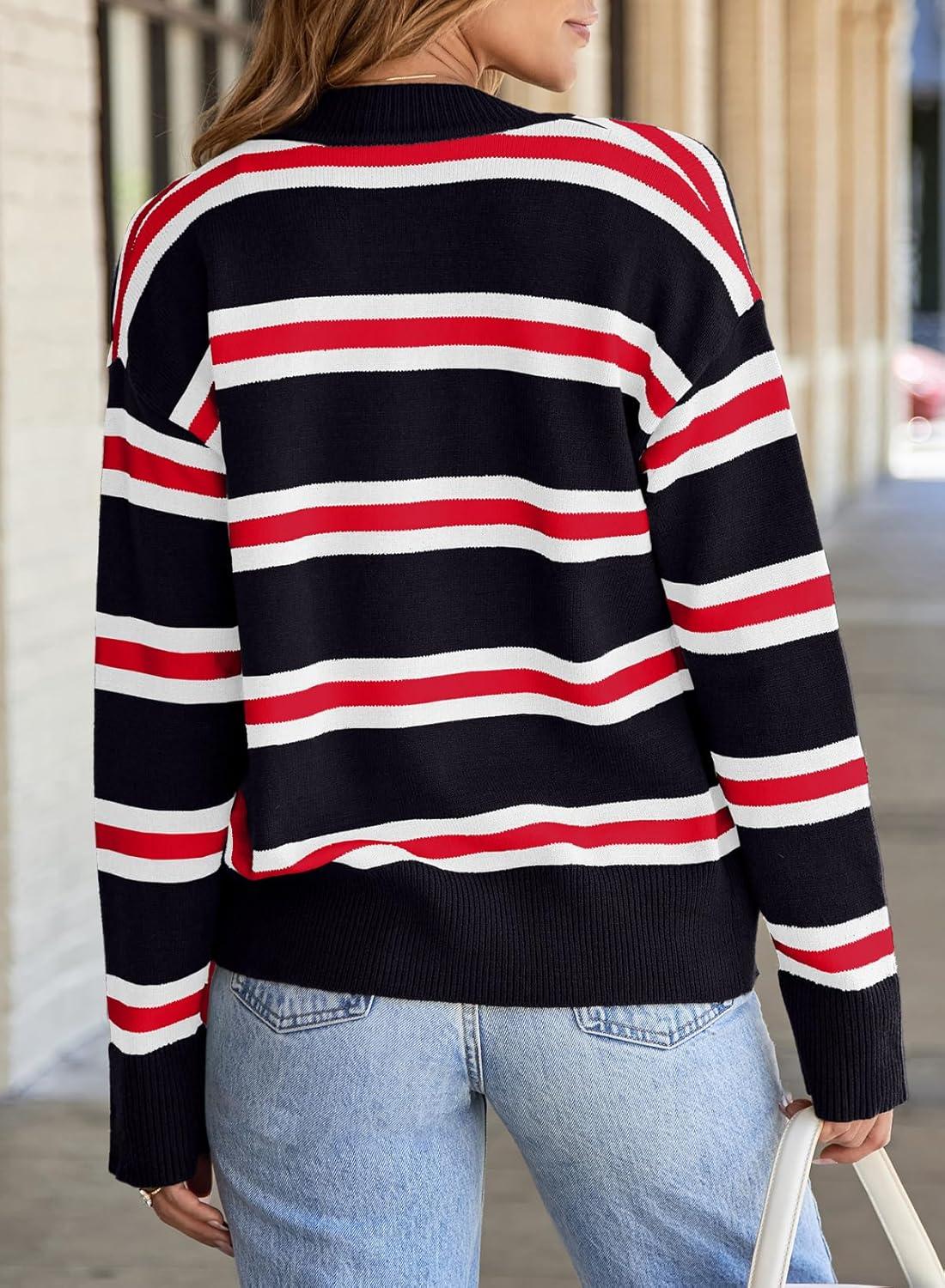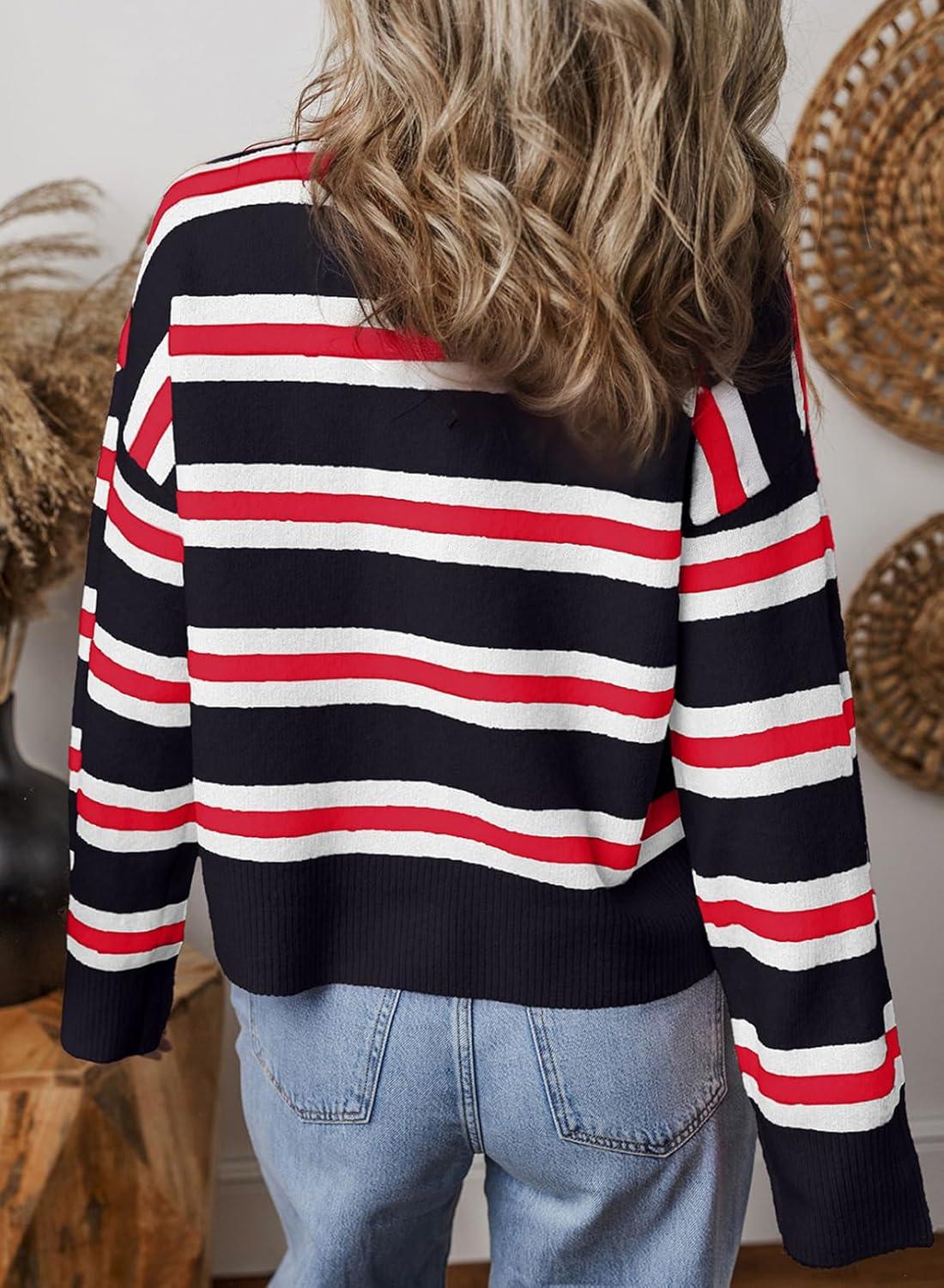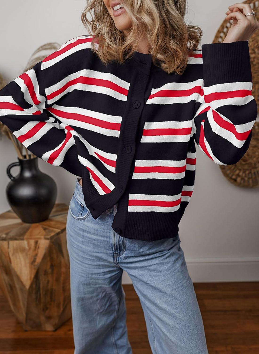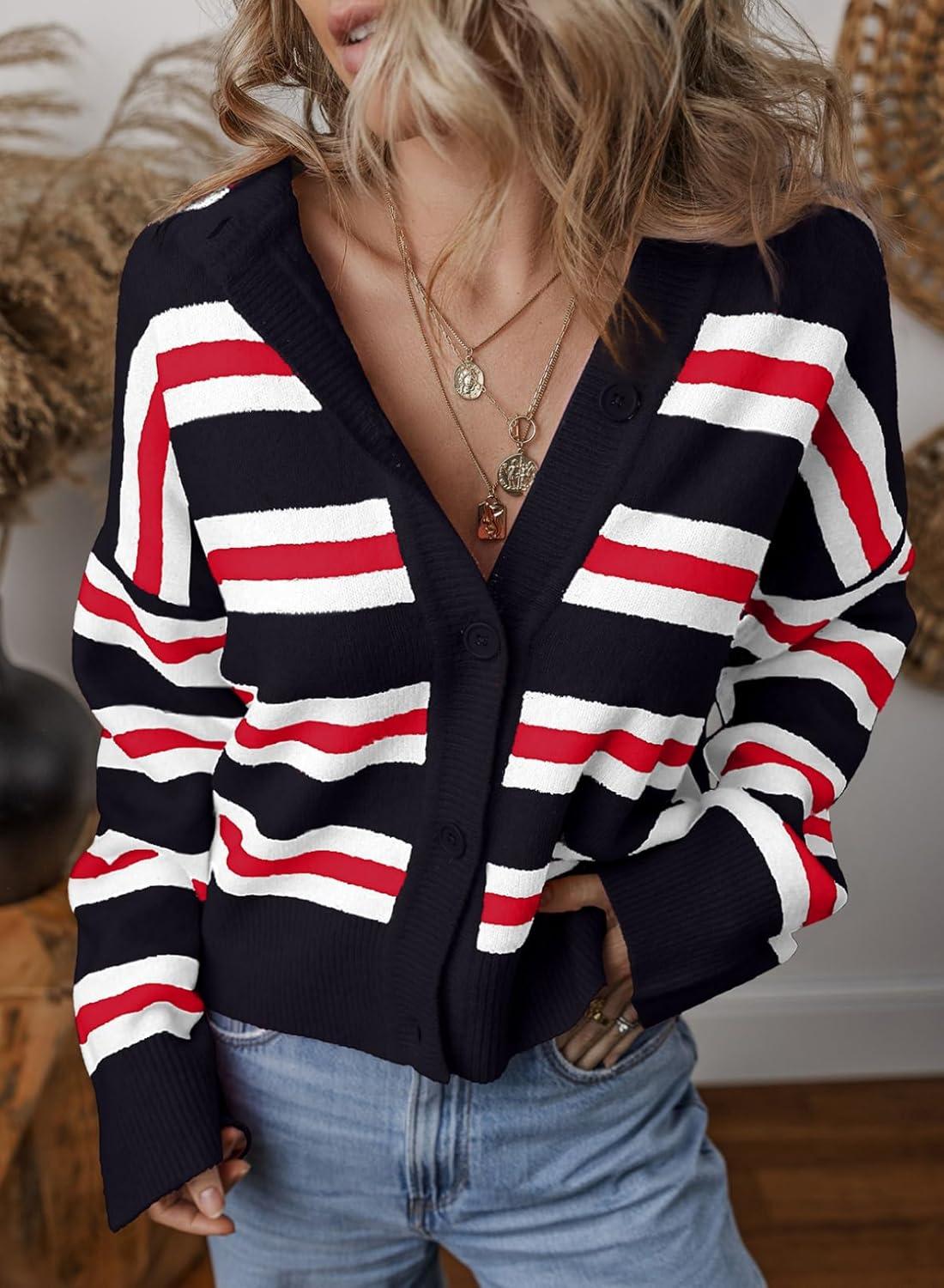 EVALESS Women’s Striped Cardigan Sweaters Trendy Lightweight Chunky Knit Cropped Sweaters Outfits Outerwear Coats(Black)