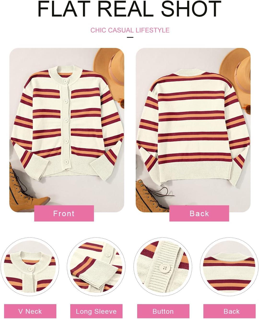 imageEVALESS Womens Striped Cardigan Sweaters Trendy Lightweight Chunky Knit Cropped Sweaters Outfits Outerwear CoatsPink Stripe