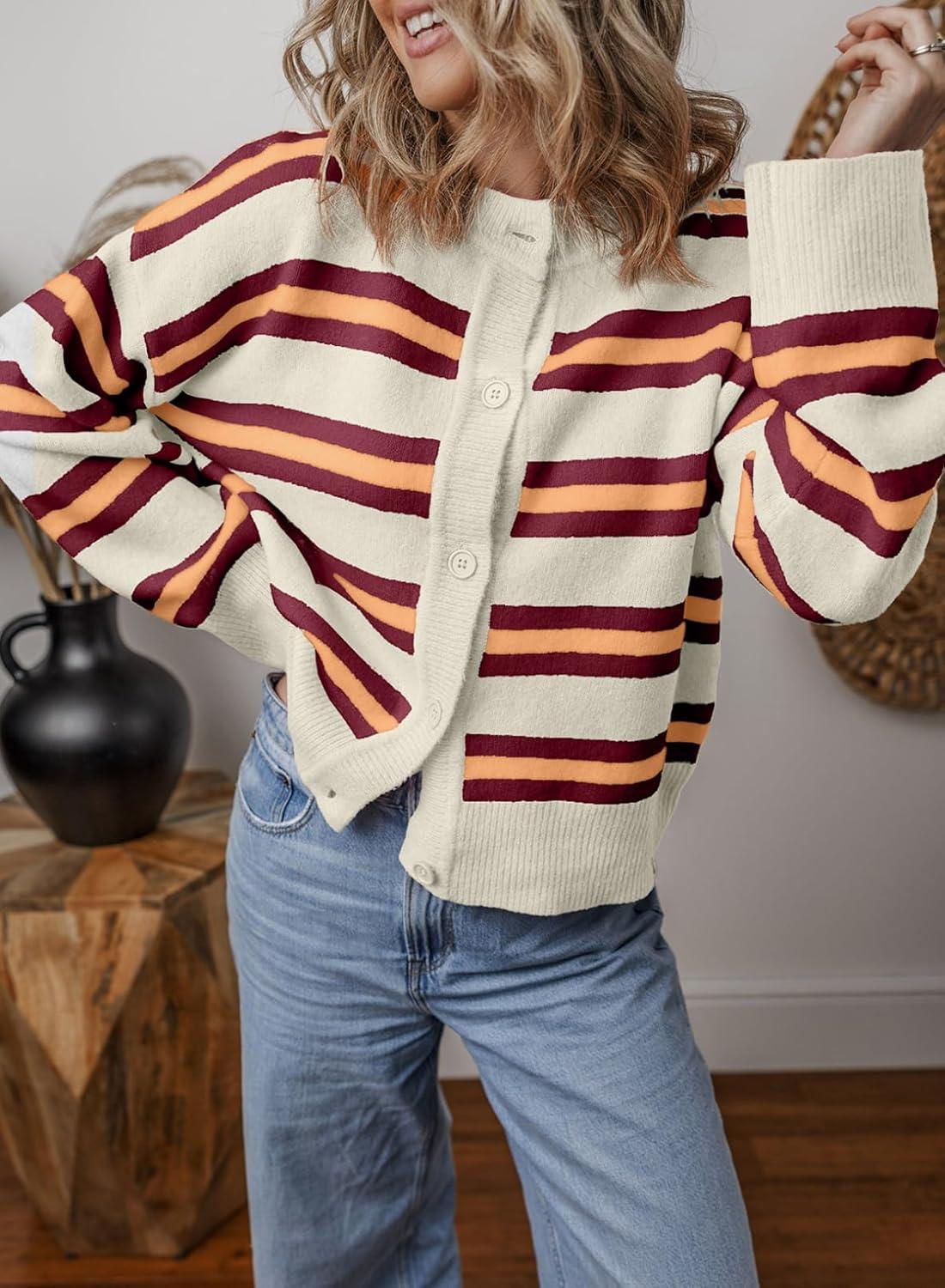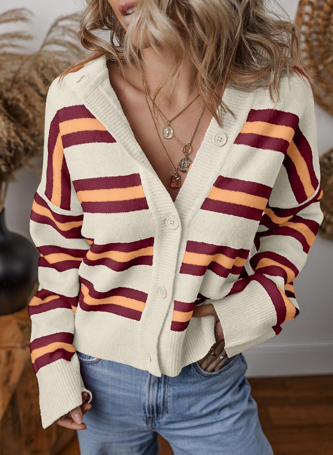 EVALESS Women’s Striped Cardigan Sweaters Trendy Lightweight Chunky Knit Cropped Sweaters Outfits Outerwear Coats(White Stripe)
