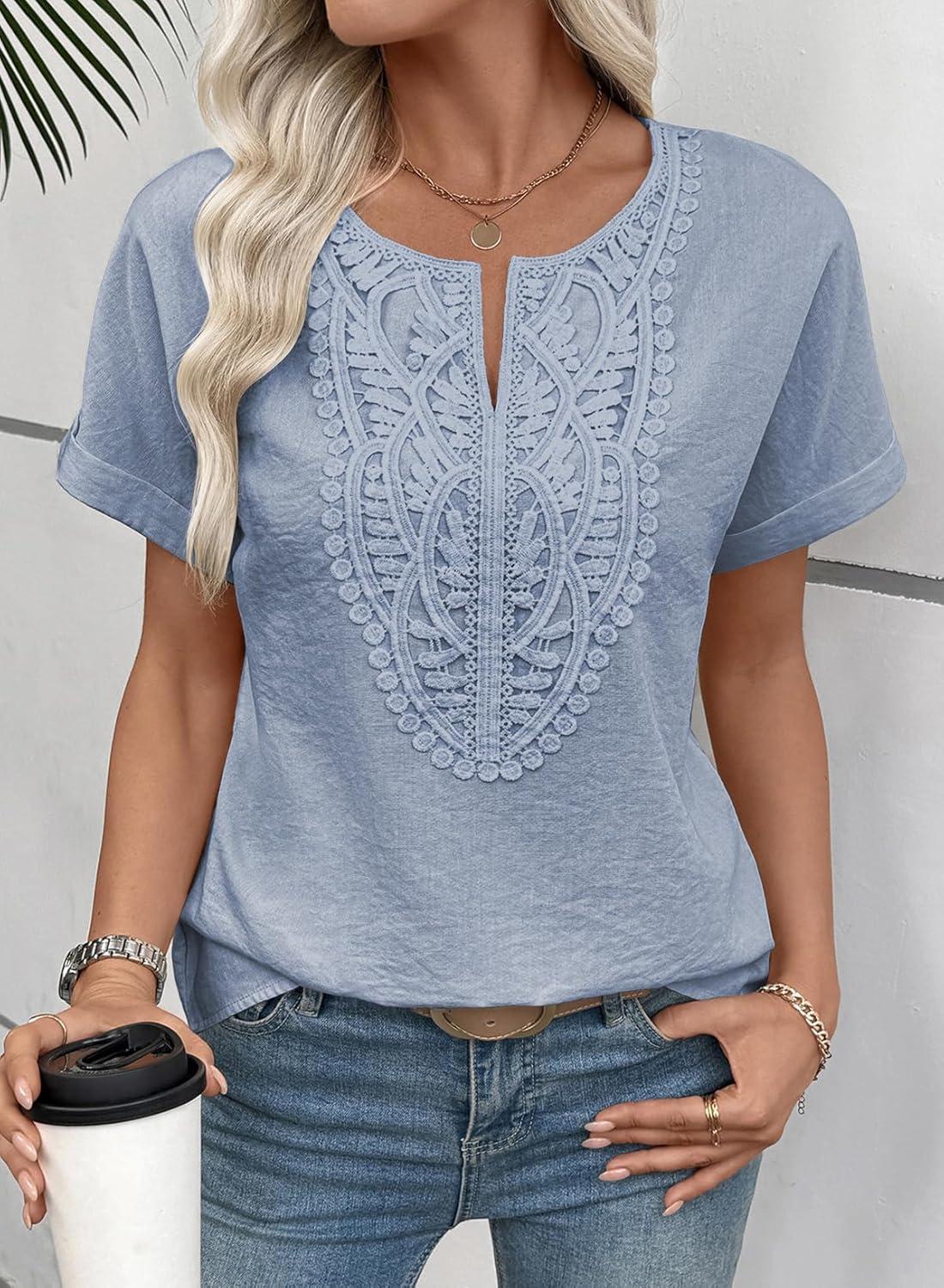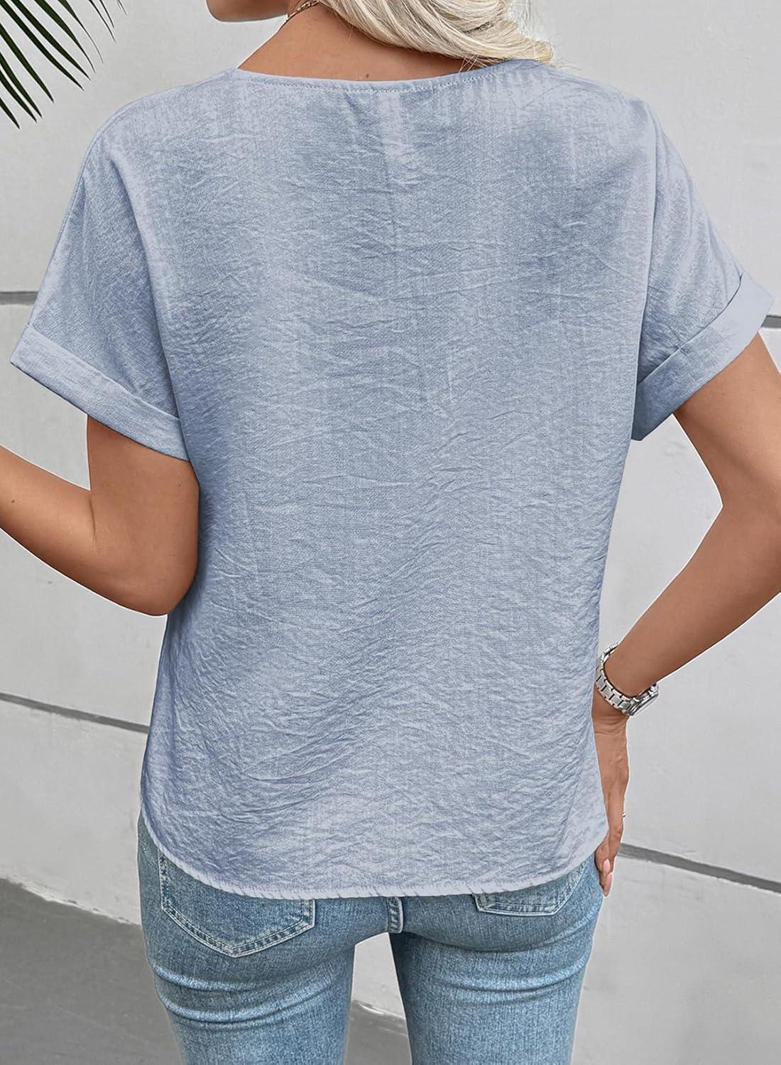 EVALESS Womens Tops Summer Trendy Dressy Casual V Neck Short Sleeve Shirts Cute Boho Business Work Loose Blouses(Sky Blue)