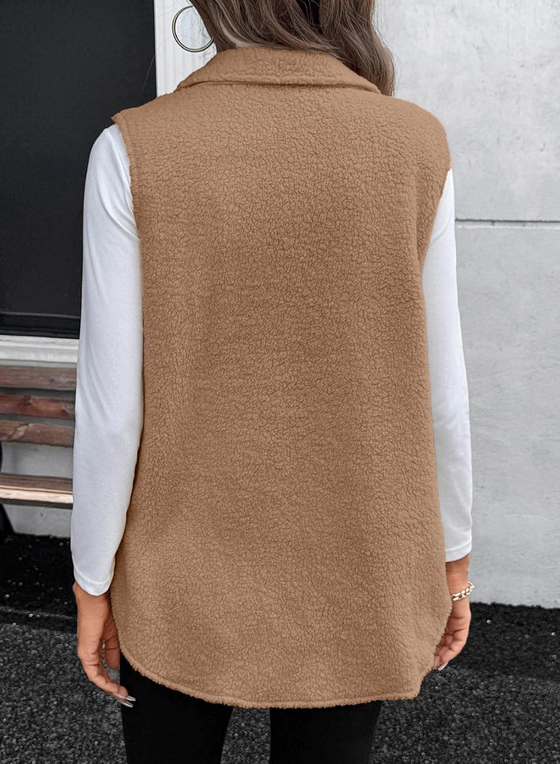 EVALESS Womens Warm Sherpa Fleece Sleeveless Button Down Long Vest Sherpa Jackets Coat Outerwear(Brown)